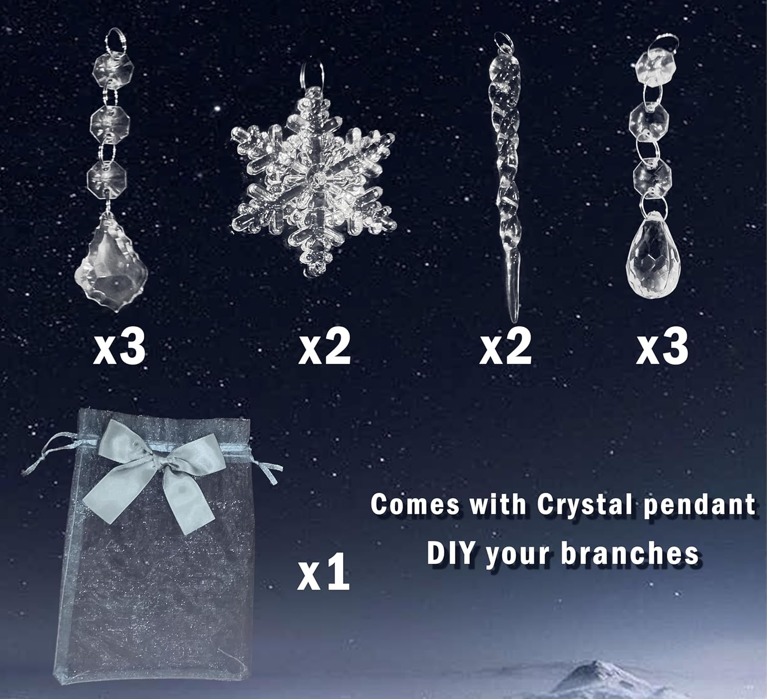 - 🎄 Come with crystal Pendant: 4 different type of crystal decorations,just DIY your christmas branch lights