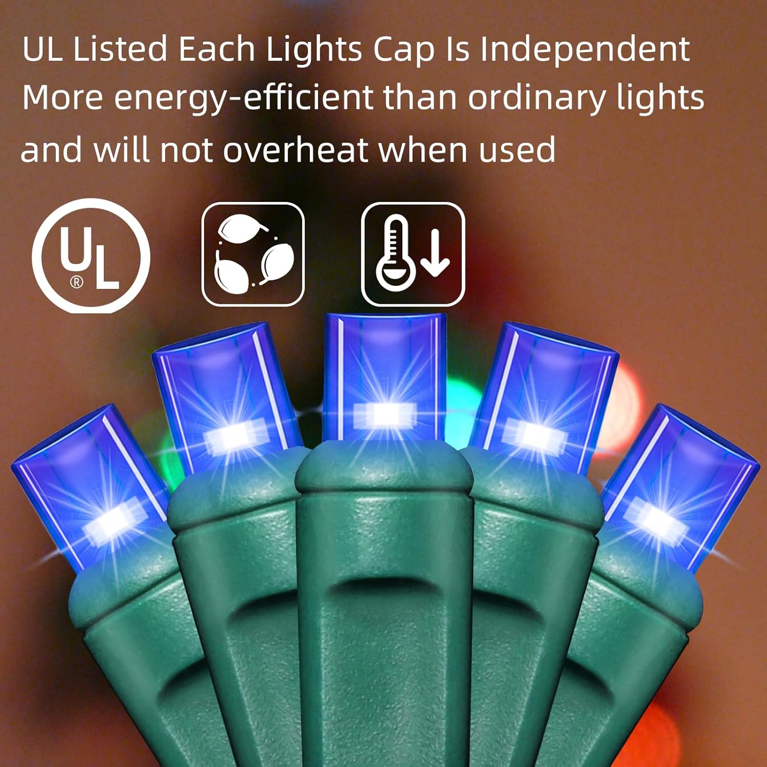 100Count (2pk of 50L) String Lights, LED Christmas Lights, 6" SPACING,Green Wire,Blue