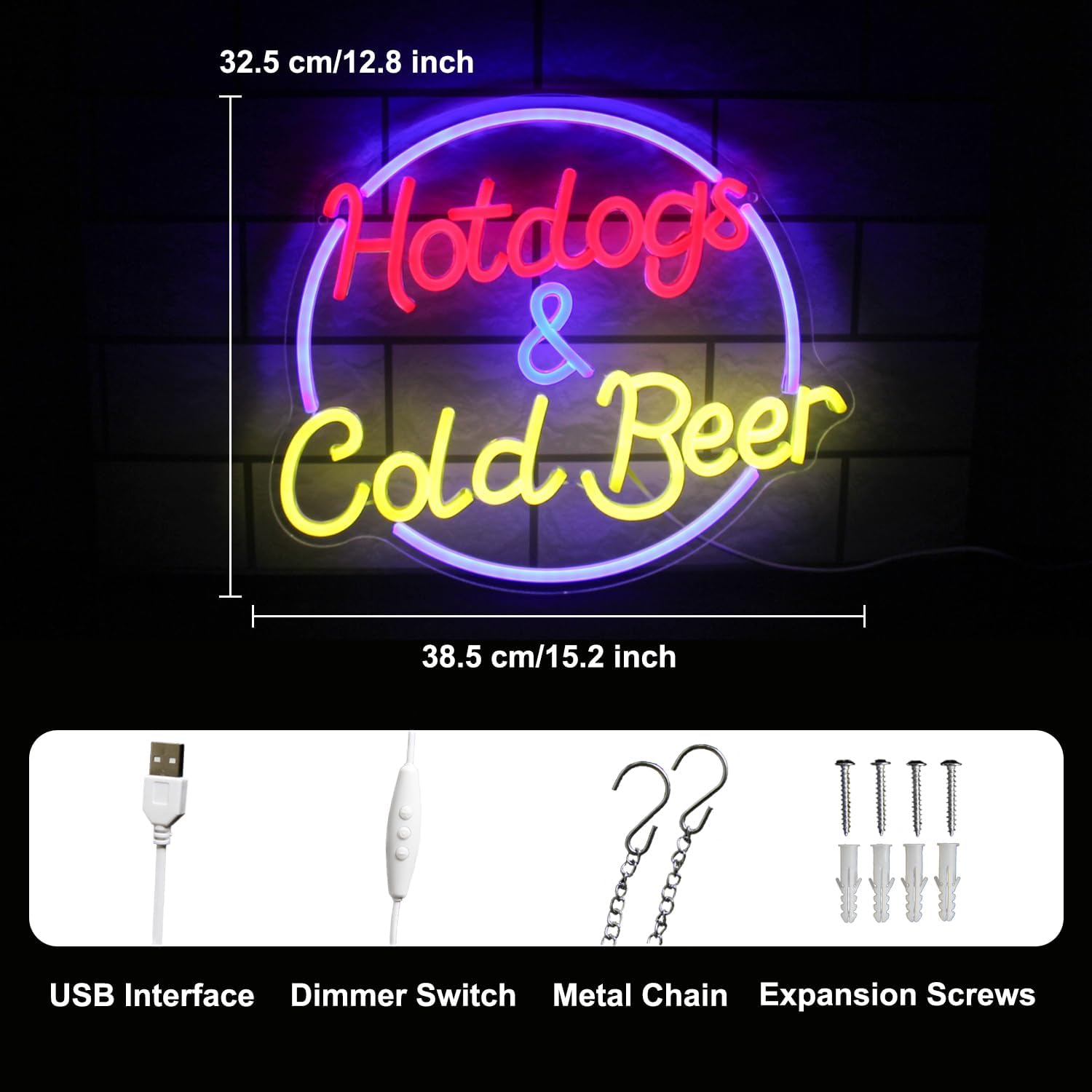 - 【Easy to Operate】Hot dog and cold beer neon lights can be lit by plugging the USB interface into the power plug, computer and charging bank. Beer neon light for wall comes with a dimmable switch that can adjust the brightness of the light according to the usage scenario and different needs.