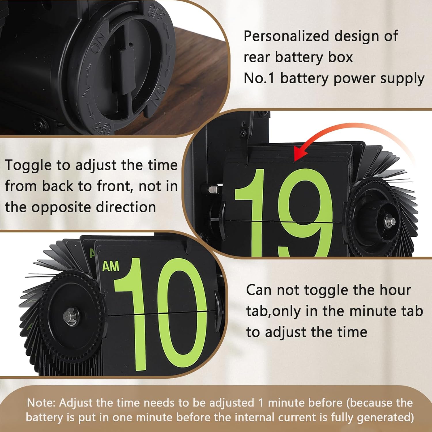 - PRACTICAL DESIGN: A rotary knob is set on the right side of the minute hand area, which is convenient for you to adjust the time at any time. And the base has a non slip pad design, can be placed on the desktop smoothly.