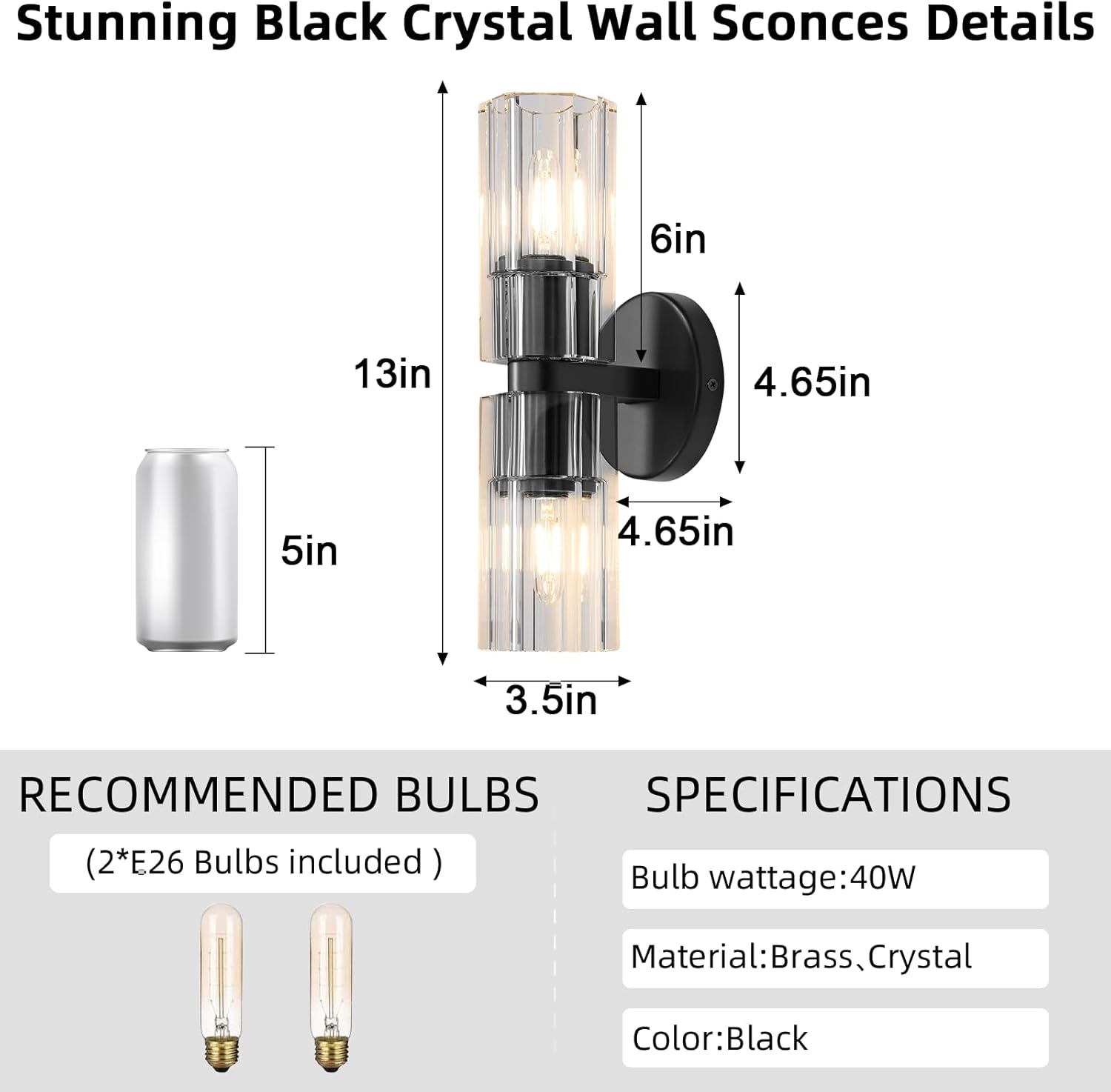 - Rust-Resistant: We understand the importance of maintaining the pristine appearance of your wall lighting accessories. That's why our 2-Light black crystal wall sconce undergoes a rigorous anti-rust and anti-corrosion treatment, ensuring that it remains as stunning as the day you first installed it. No need to worry about unsightly rust or deterioration – this sconce is built to withstand the test of time, even in humid environments.