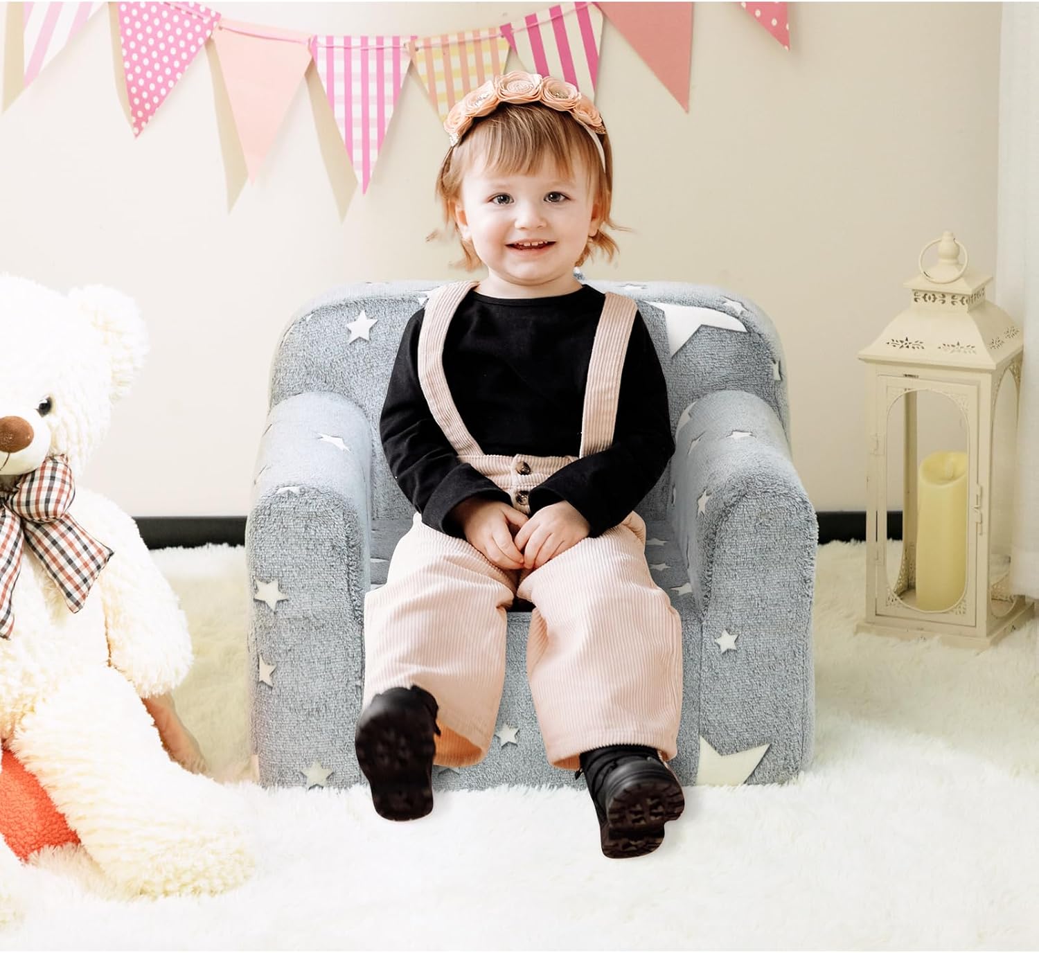 ALIMORDEN Kids Ultra-Soft Snuggle Foam Filled Chair, Single Cuddly Sherpa Reading Couch for Boys and Girls,Star