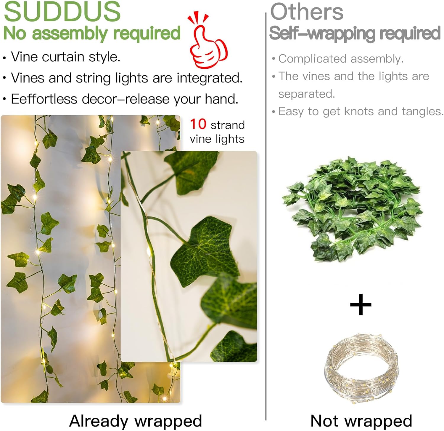 suddus Vines with Light for Bedroom, 200 LED Fairy Lights with Vines, Ivy Curtain Lights for Dorm, Wedding, Party, Wall, Indoor, Outdoor Decor, 6.5ft x 6.5ft