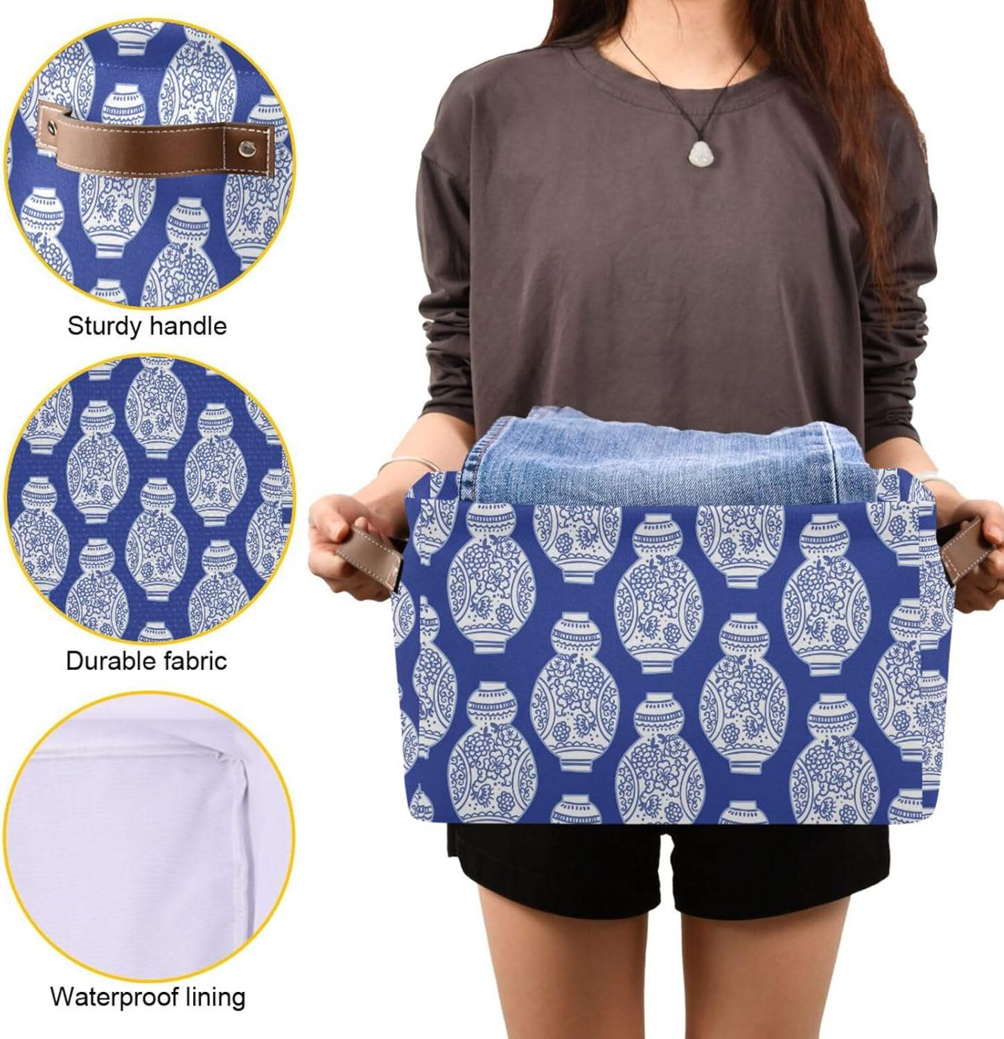 susiyo Storage Baskets for Shelves Organizer Baskets with Metal Frame Closet Storage Bins Fabric Bins Cubes with PU Handles for Organizing Shelf Nursery Toys 1 PACK,Blue Chinoiserie Vases