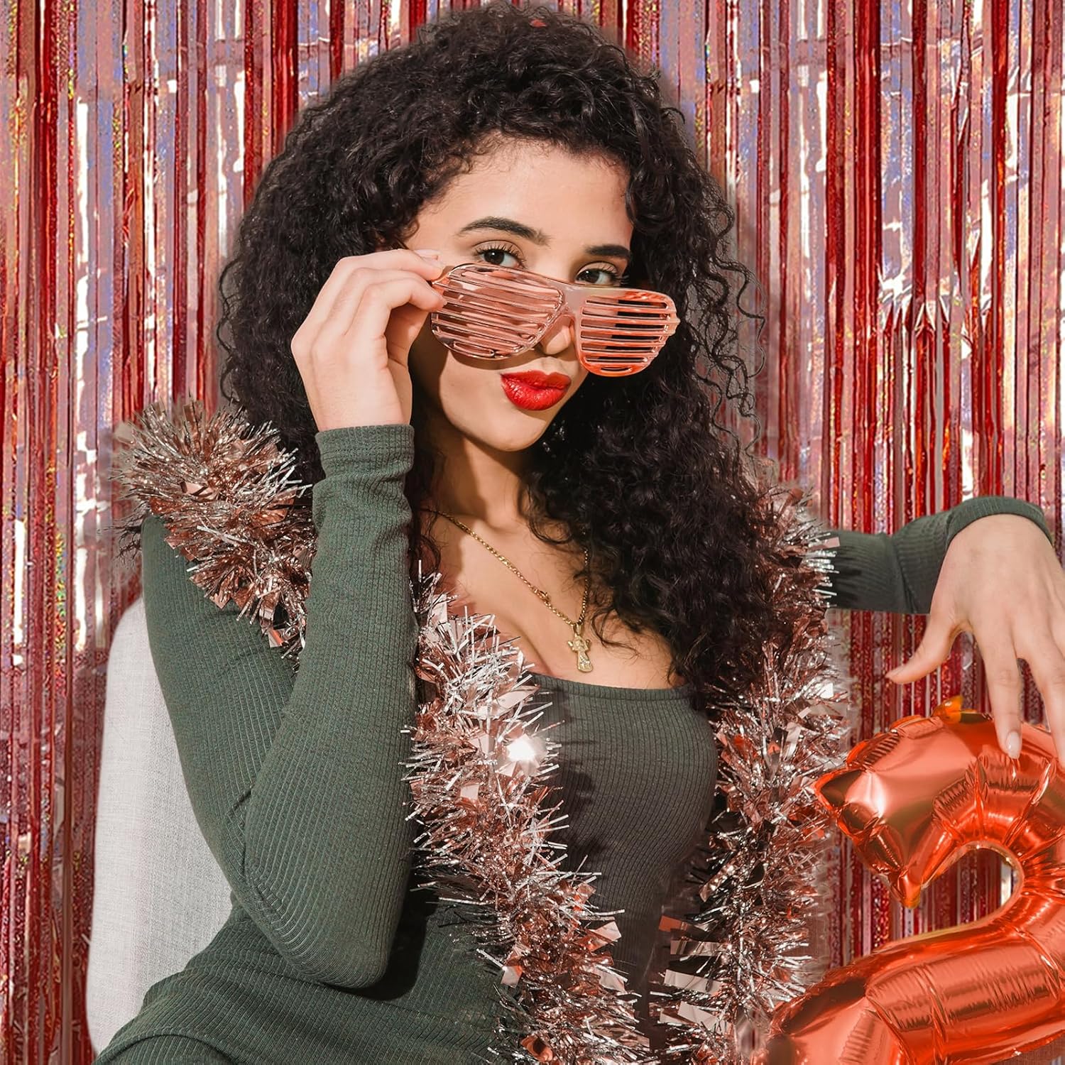 3 Pack Rose Gold Fringe Curtain Backdrop Birthday Bachelorette Party Decorations Metallic Tinsel Streamers Foil Backdrop Christmas Graduation Wedding New Year Party Decorations