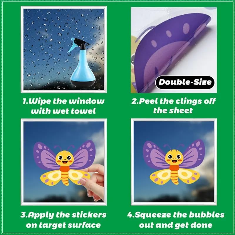 - Vibrant Decor: This set includes 93 pieces of beautiful cling window stickers featuring daisies, sunflowers, butterflies and other spring/summer motifs for an instant decorative pop of color and nature-inspired charm.
