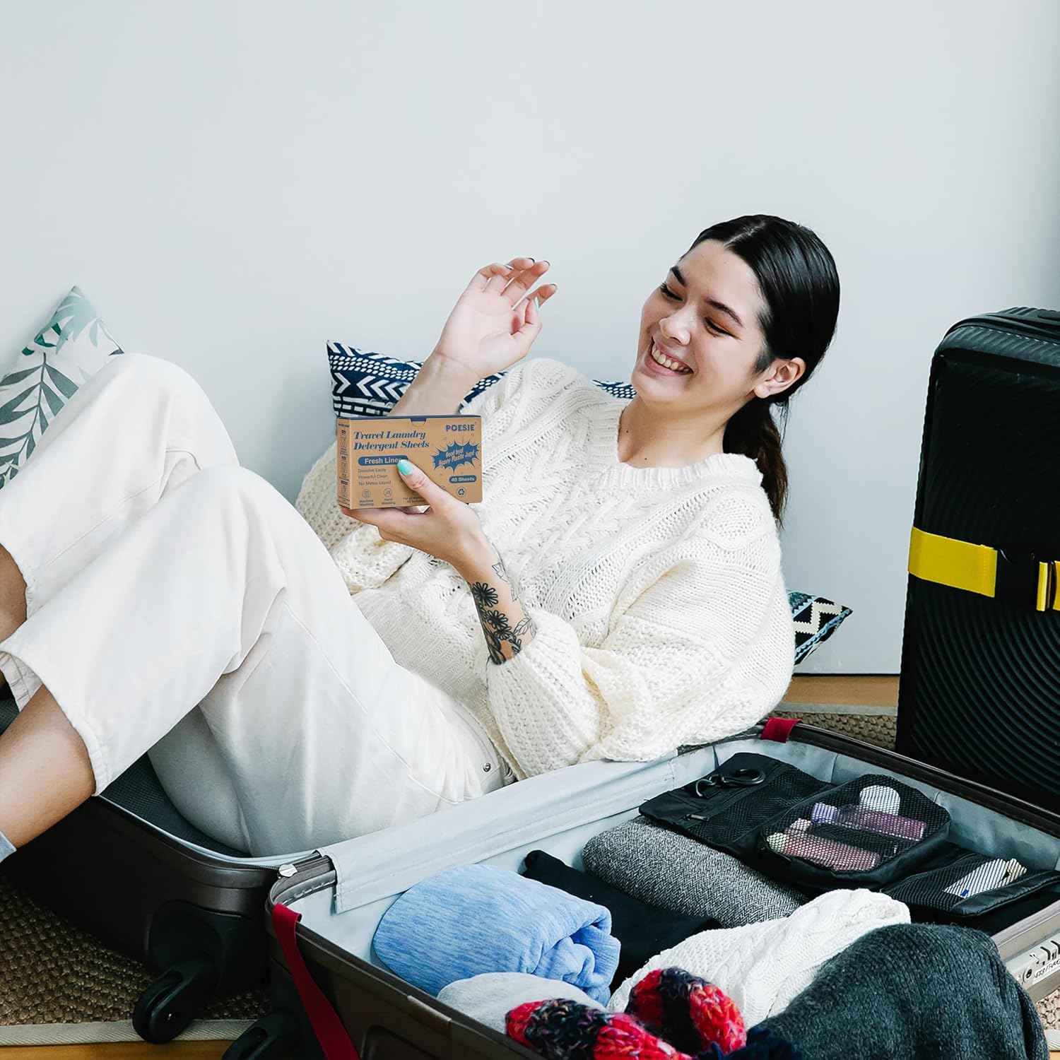 Poesie Travel Laundry Detergent Sheets 120 Sheets Liquidless Clothes Washing Strips Fresh Linen Scent (3 Pack 40 Count)