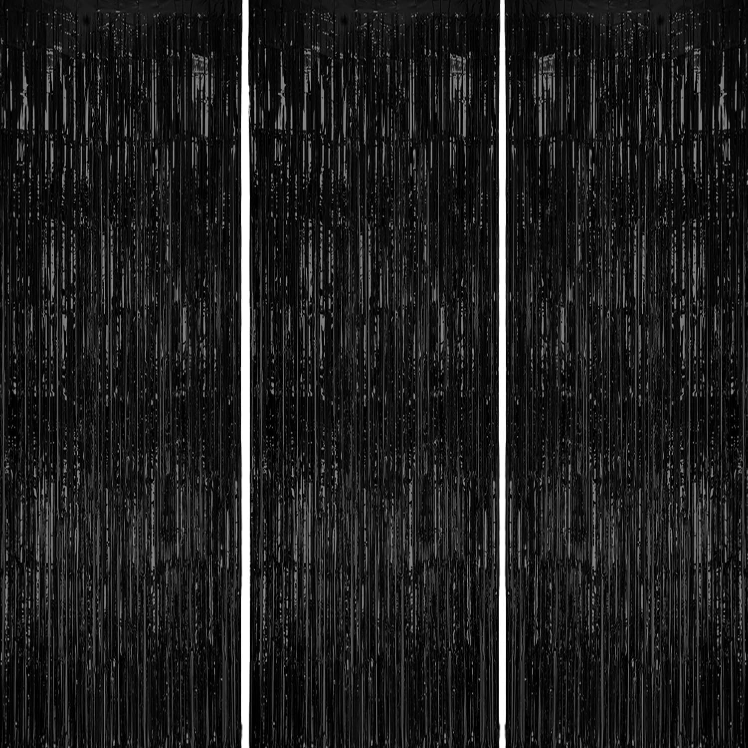 3 Pack Foil Fringe Backdrop - Black Shiny Tinsel Curtains for Party Decoration/Photo Booth Props - 3.3x8.2 FT Metallic Foil Backdrop for Birthday, Wedding, Graduation, Christmas.