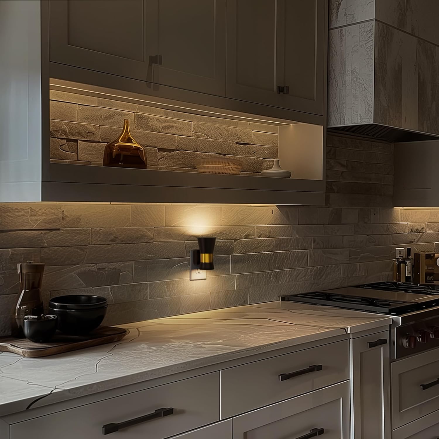 - Vintage Night Light: This vintage night light plugs into the wall and illuminates both up and down. Crafted in black-gold hues, it exudes quality and elegance, serving as a luxurious accent and focal point in any room.
