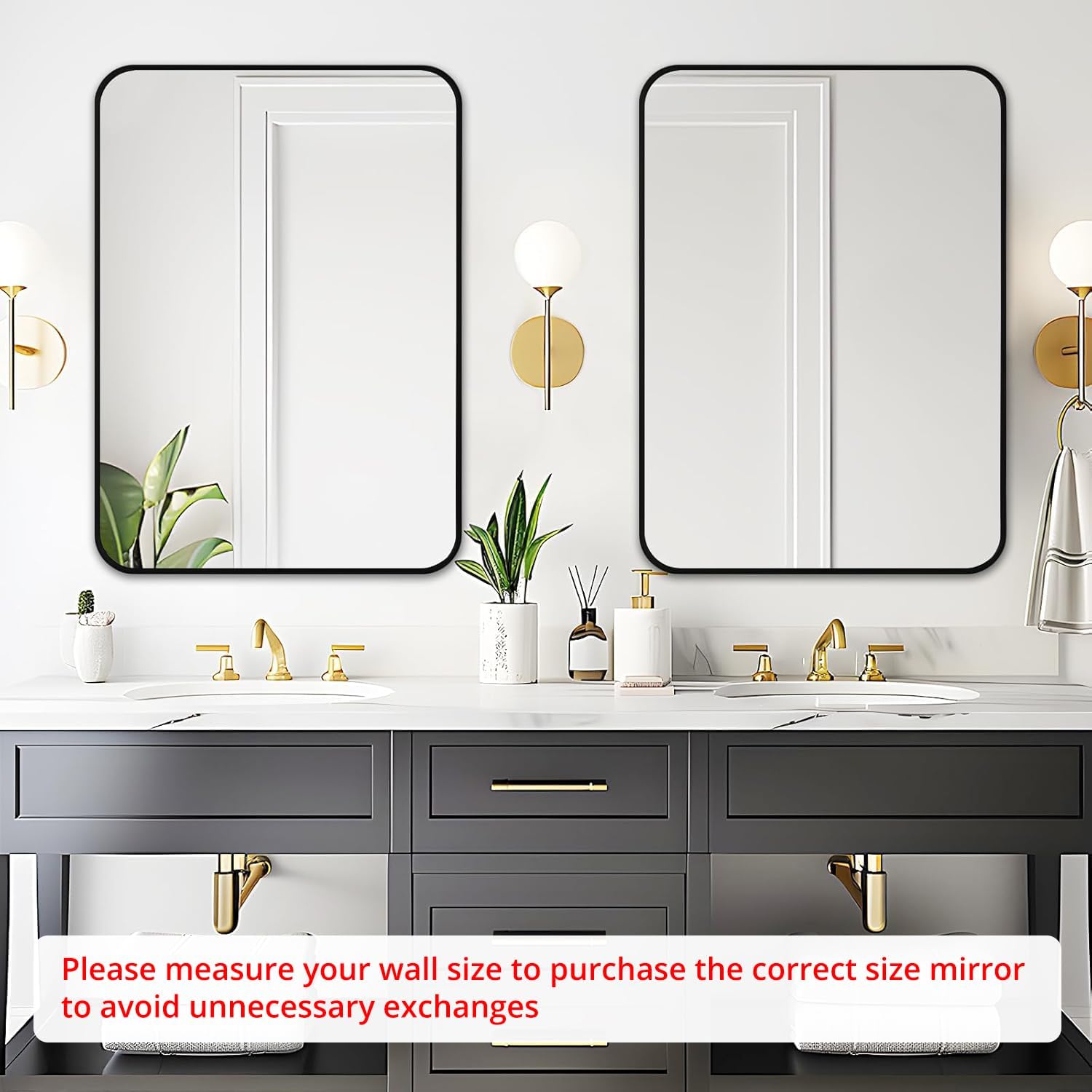 - Secure and Easy Installation - The bathroom vanity mirror comes with screws hardware. Just measure the distance of the hole behind the mirror and drill the holes in the wall to install the mirror