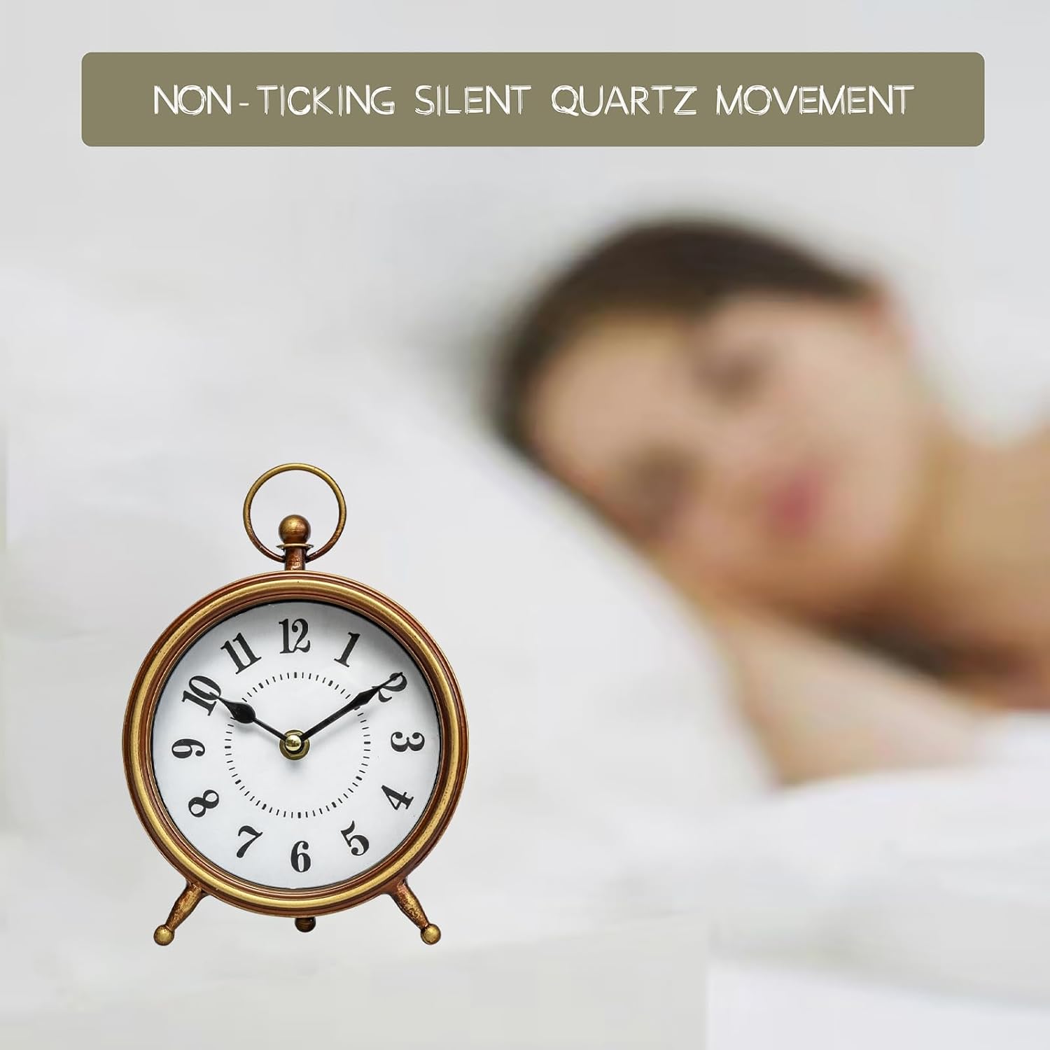 EMAX Home Vintage Small Table Clock on Stand,Desk and Shelf Clock Decorative Farmhouse Mantel Non-Ticking Clock Rustic Metal Frame with Antique Gold Finish 9.3 Inch…