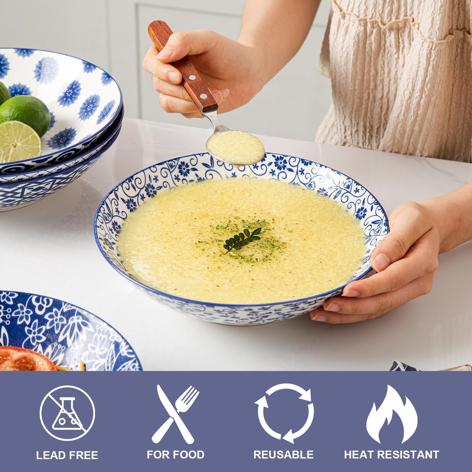 - VERSATILE DESIGN: These ceramic pasta bowls are wide and shallow, perfect for enjoying a variety of dishes such as noodles, pho, salad, soup, fruits, vegetables, cereal, and stir-fries. Ideal for everyday meals or special occasions.