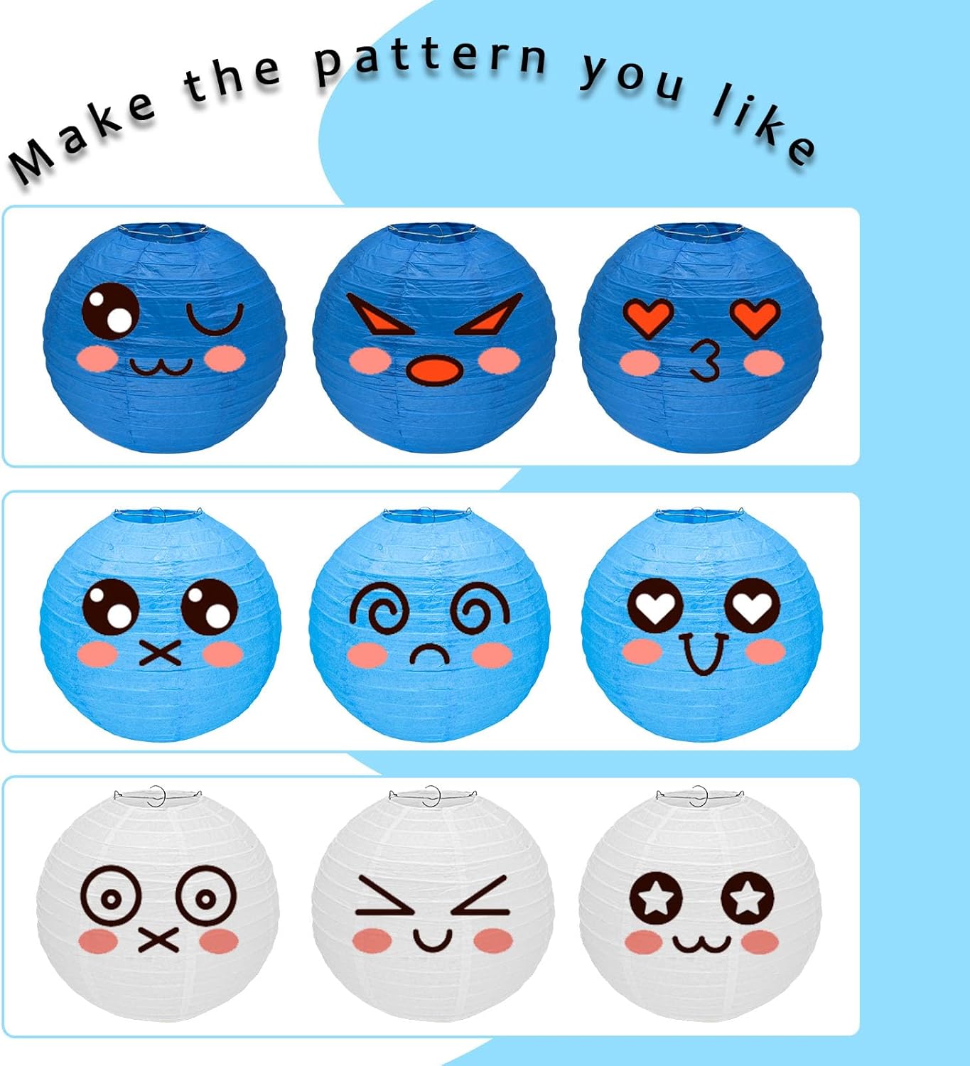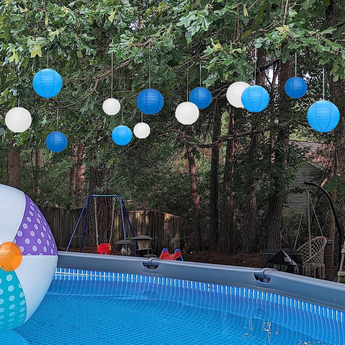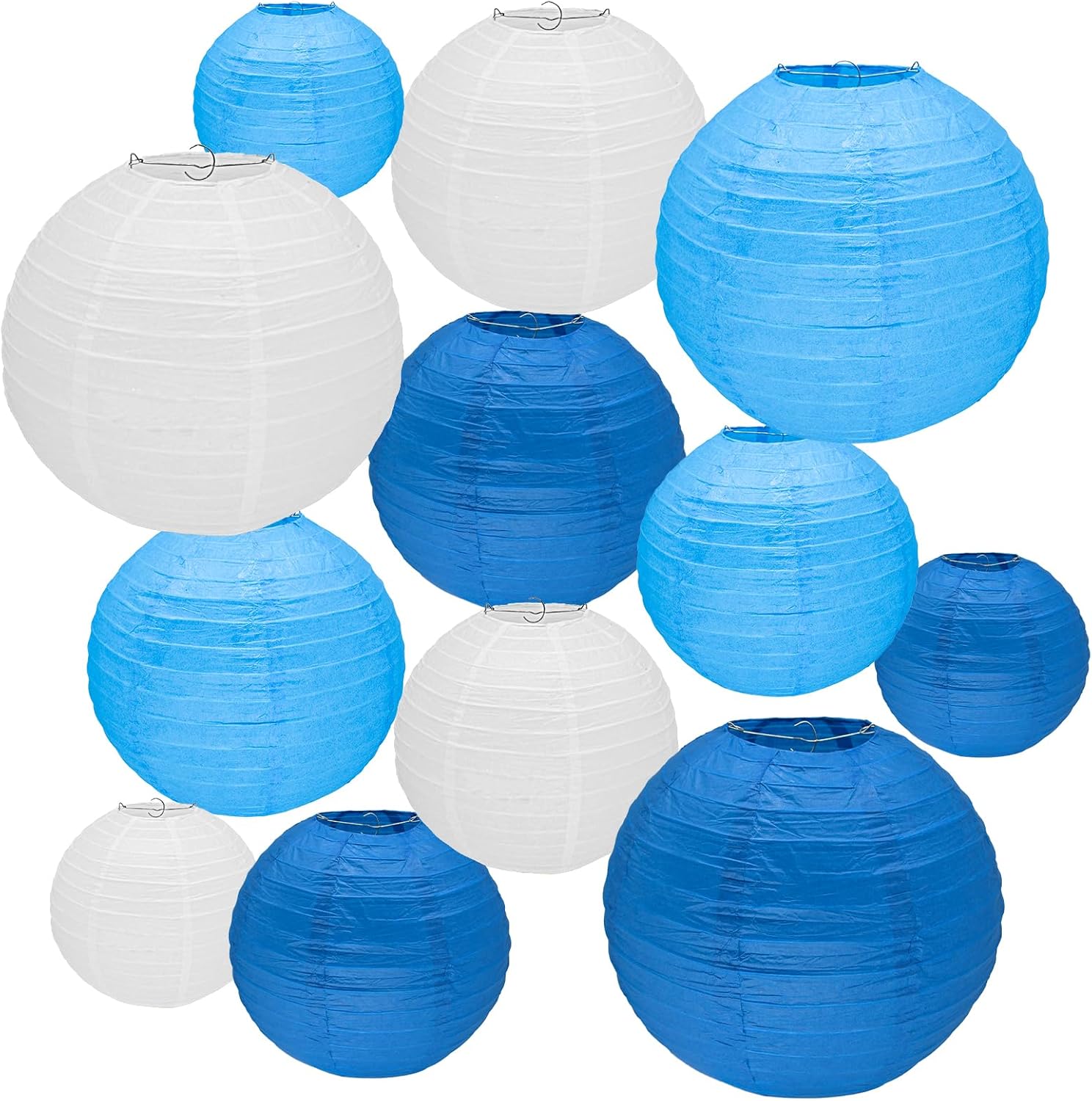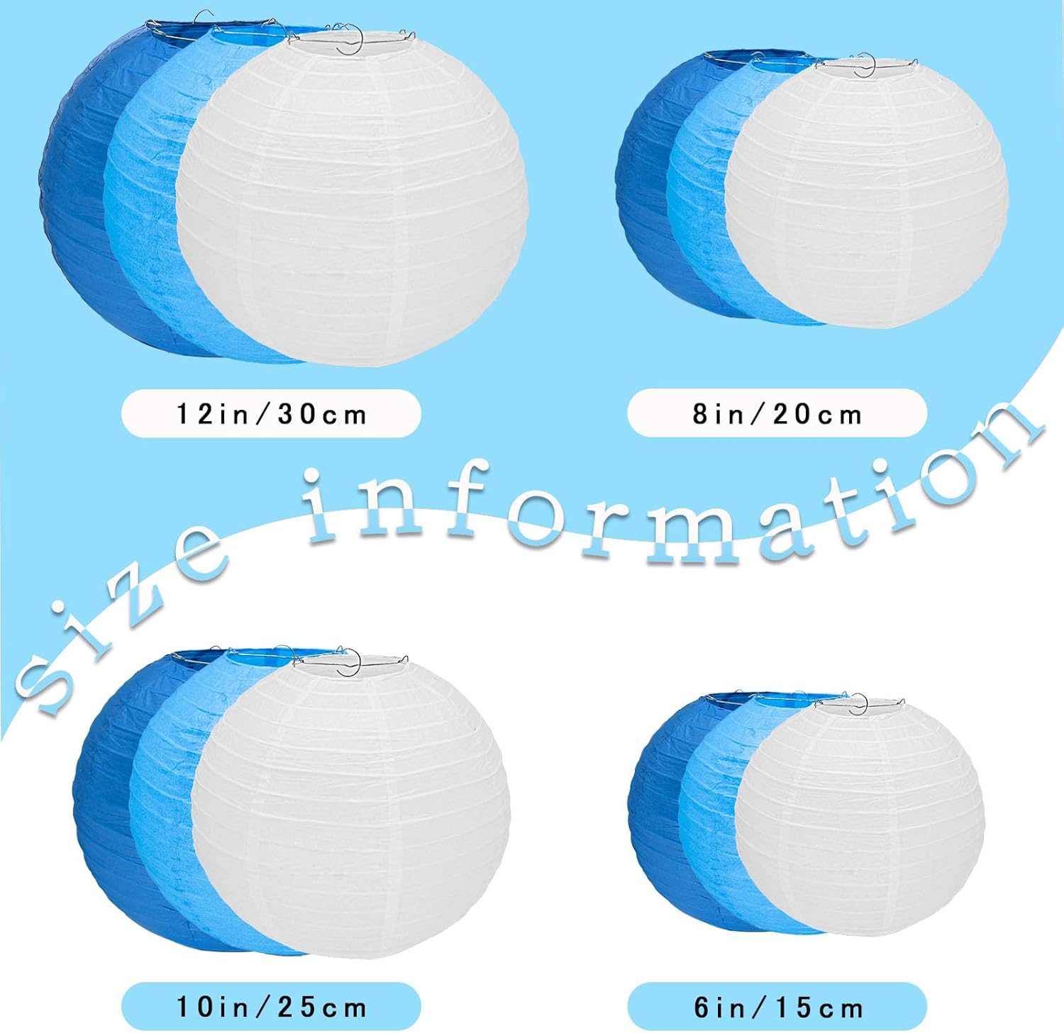 12Pcs Round Paper Lanterns Assorted Sizes (6" 8" 10" 12") for Home Decor, Restaurant, Church, Wedding, Birthday Party Decorations, Hanging Chinese Japanese Paper Lantern Lamps (Blue Series)