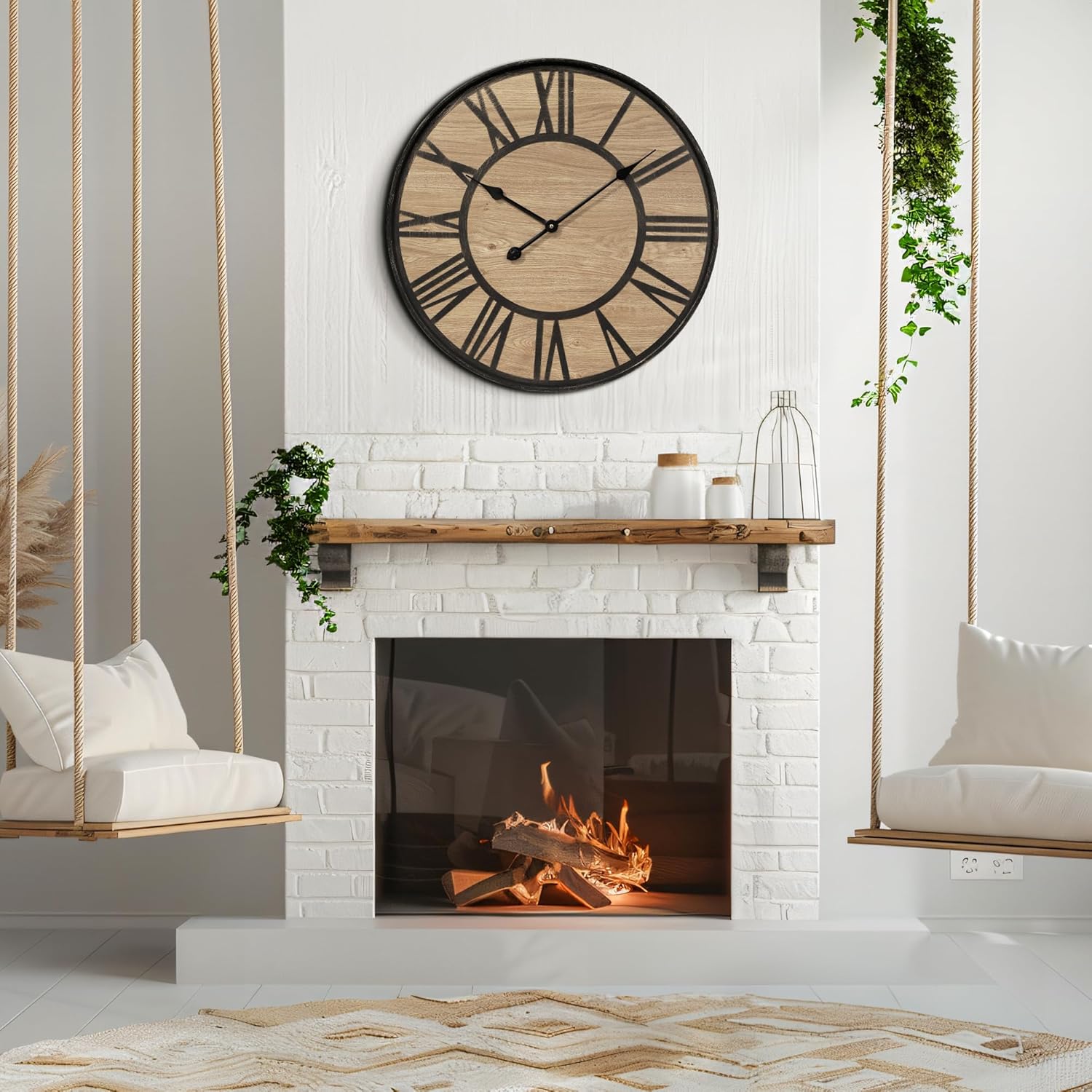 Large Wall Clock for Living Room Decor, Non Ticking Silent, Battery Operated Modern Vintage Wood Oversized Decorative Wall Clock for Bedroom Kitchen Farmhouse Office Decor