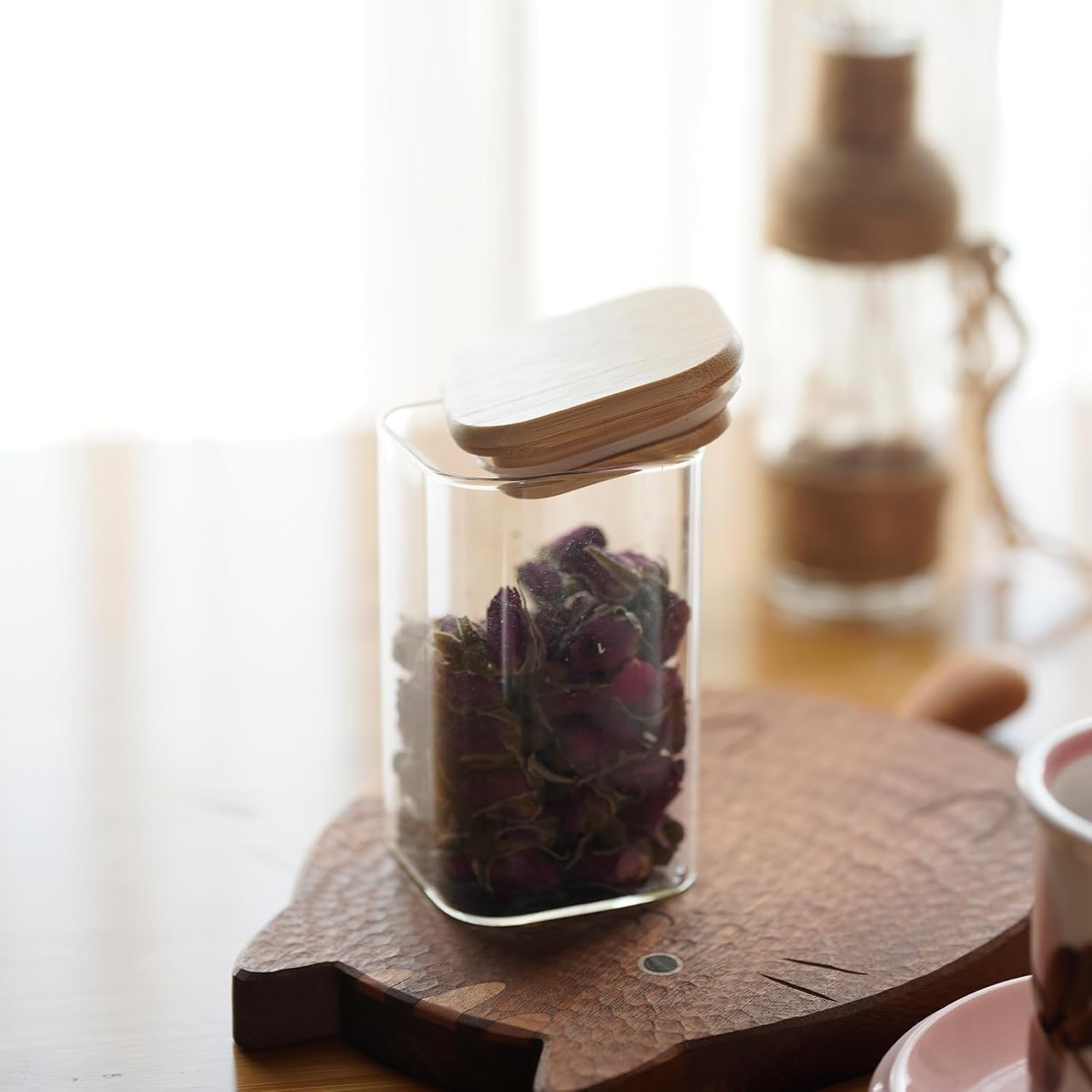 - [Premium quality and safety assurance] Our glass containers with bamboo lids are made of premium quality and borosilicate glass, glass pantry storage containers can withstand the harsh tests of daily use. The bamboo lid provides an airtight seal, ensuring the freshness of stored food. Our glass food storage jars are BPA Free, Phthalate Free, PVC Free, Lead Free, They are healthy and reliable choice for your kitchen.