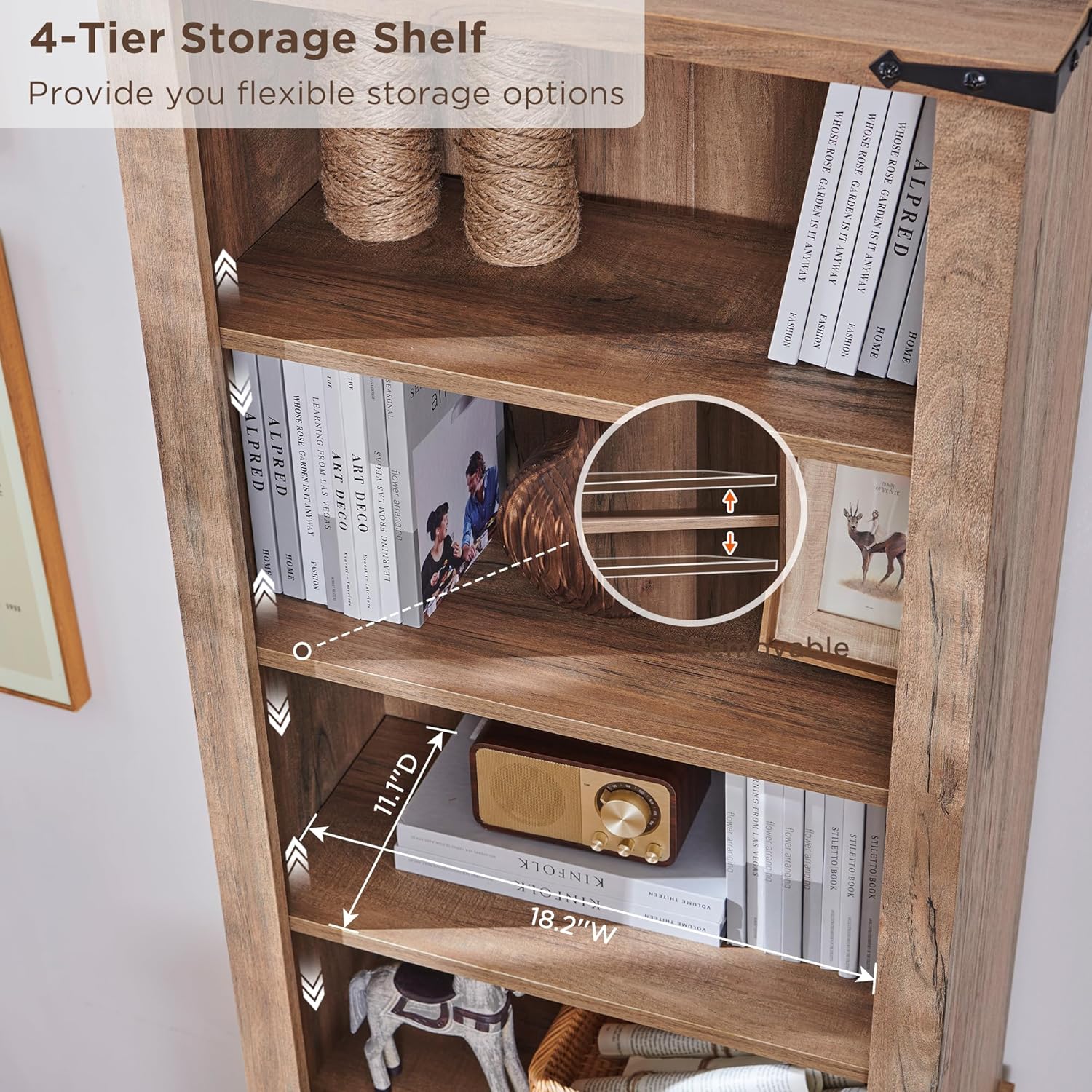- Multi-purpose: Simple and rustic design matches well with home decoration. The tall bookcase both can be placed in the living room for decorative items, in the kitchen for kitchenware and food and in the school library and classroom as a book corner..
