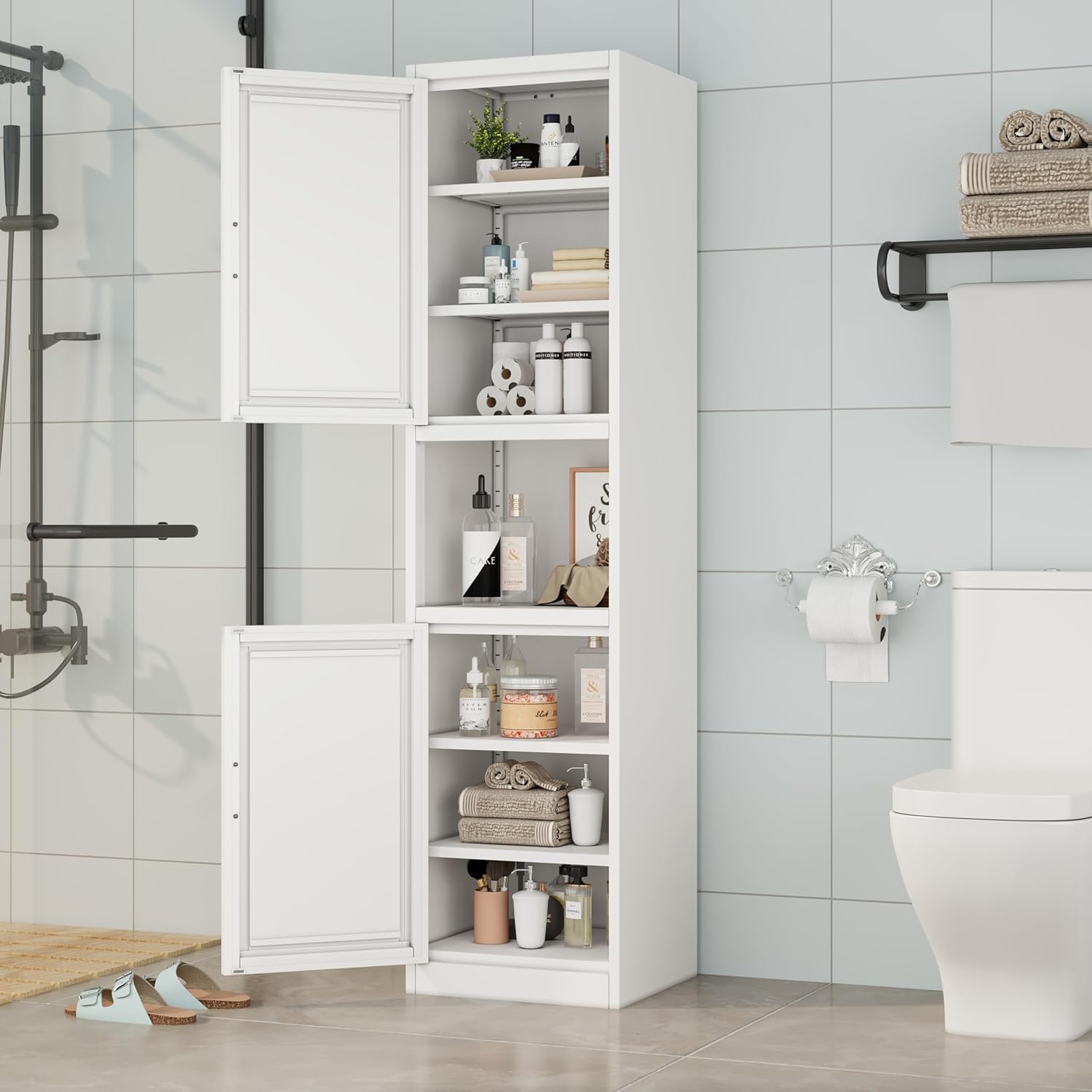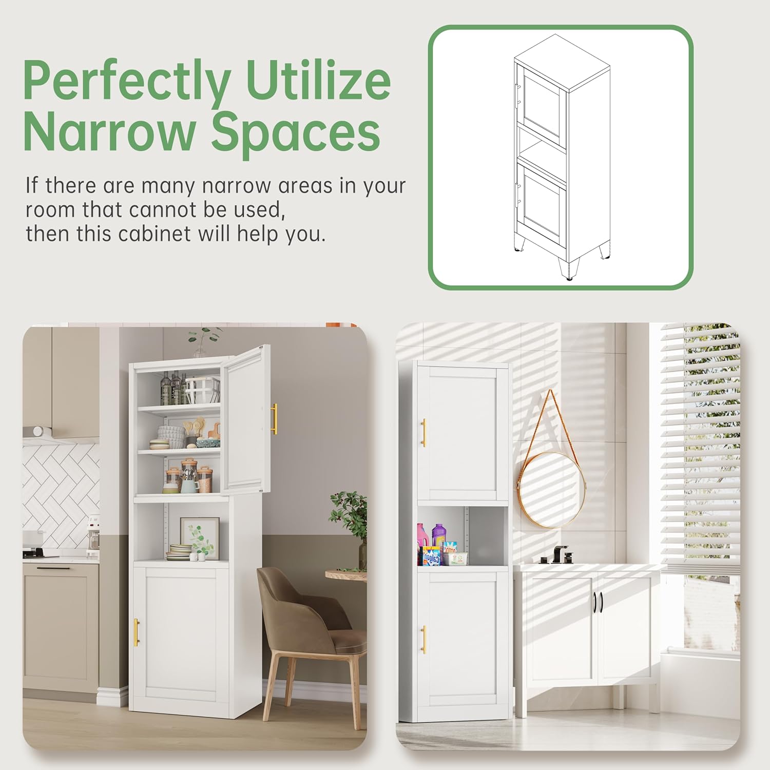 - 🛒【High Quality Materials】: The storage cabinet is made of high-quality cold-rolled steel. Pantry cabinet adopts a high-quality electrostatic powder layer, which is easy to clean, scratch resistant, and sturdy and durable.
