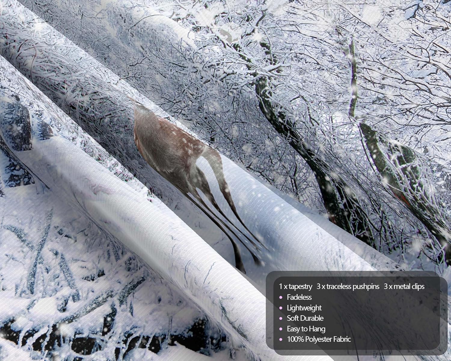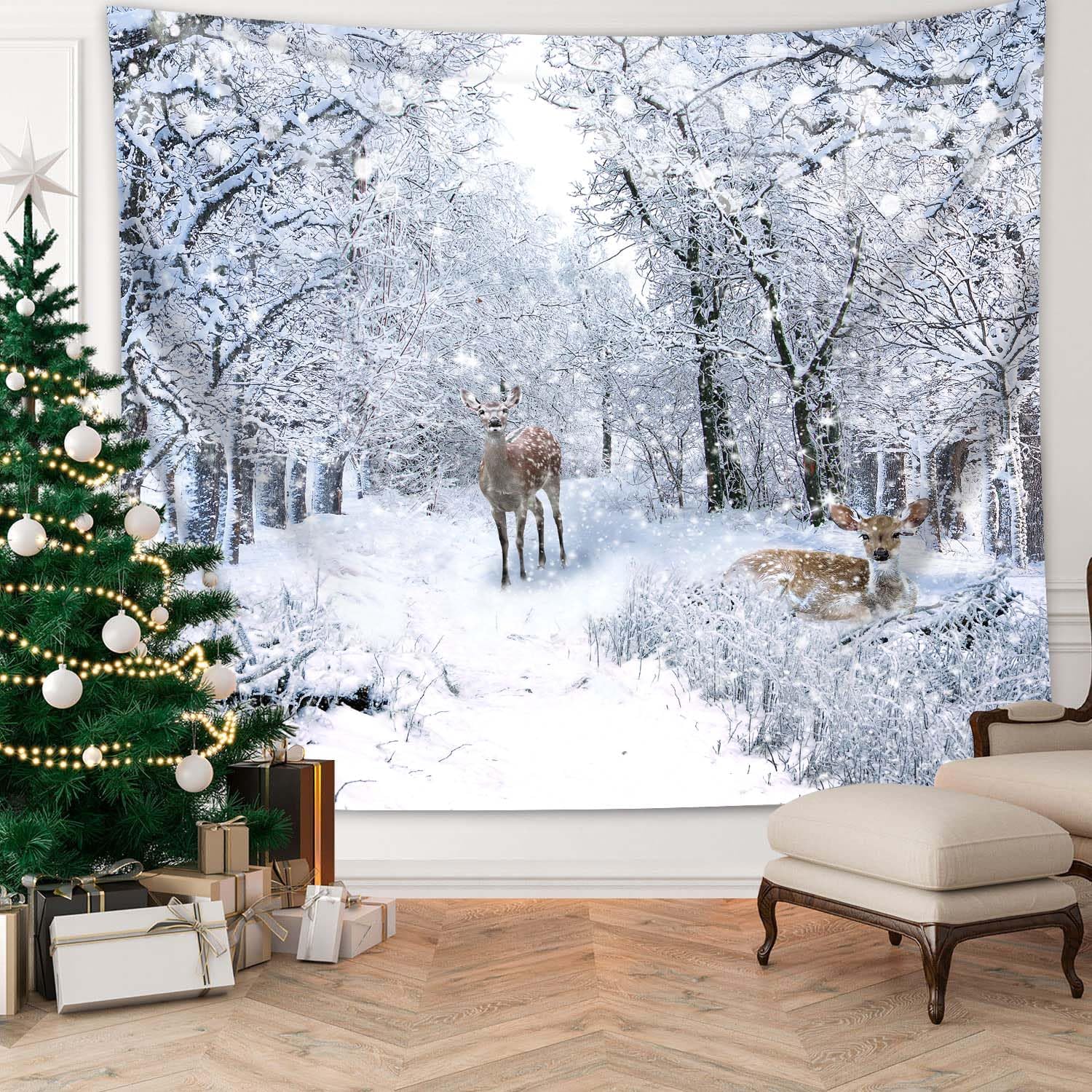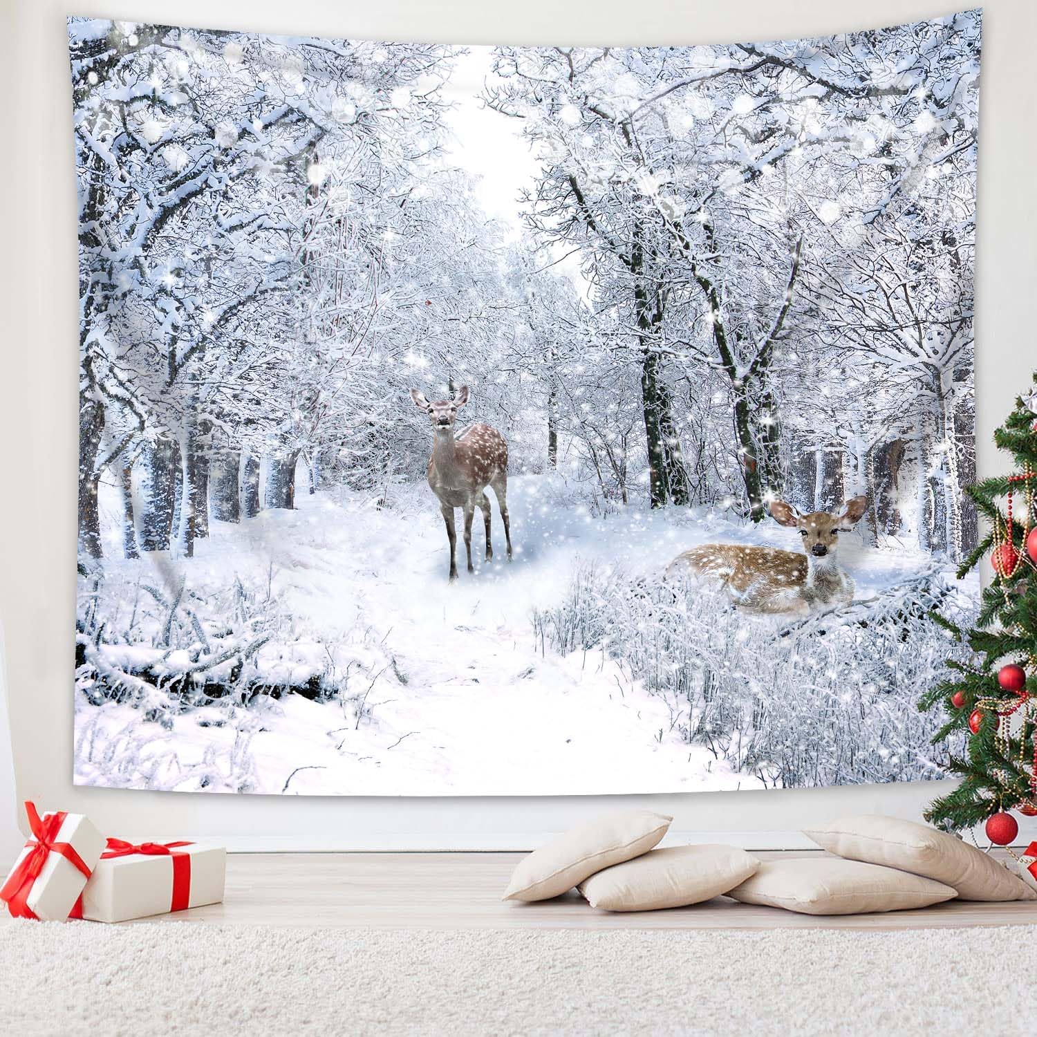 QGHOT Winter Tapestry Wall Hanging, Snow Scene Backdrop Winter Wonderland Wall Decor Snowy Forest Wall Art Nature Woodland Deer Tapestry for Bedroom Room Dorm Party Decoration, Extra Large