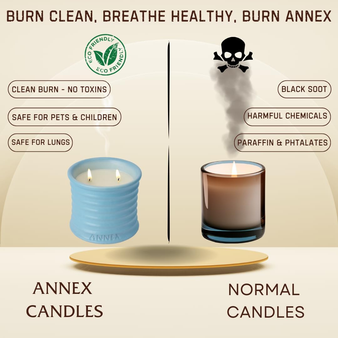 - 🕯️HANDMADE SOY CANDLES WITH LUXURY SCENTS: Over 500,000 customers have enhanced their homes with Annex handmade soy candles for women. Featuring elegant scents such as lavender, vanilla, eucalyptus, peppermint, rose, sandalwood, and volcano. Designed to provide long-lasting fragrance in any space. Each candle is thoughtfully crafted with a clean burning of 50 hours with thoughtfully selected ingredients.
