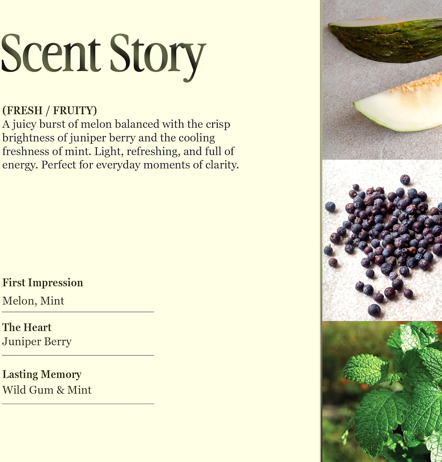 - Scent : Melon & Juniper Berry