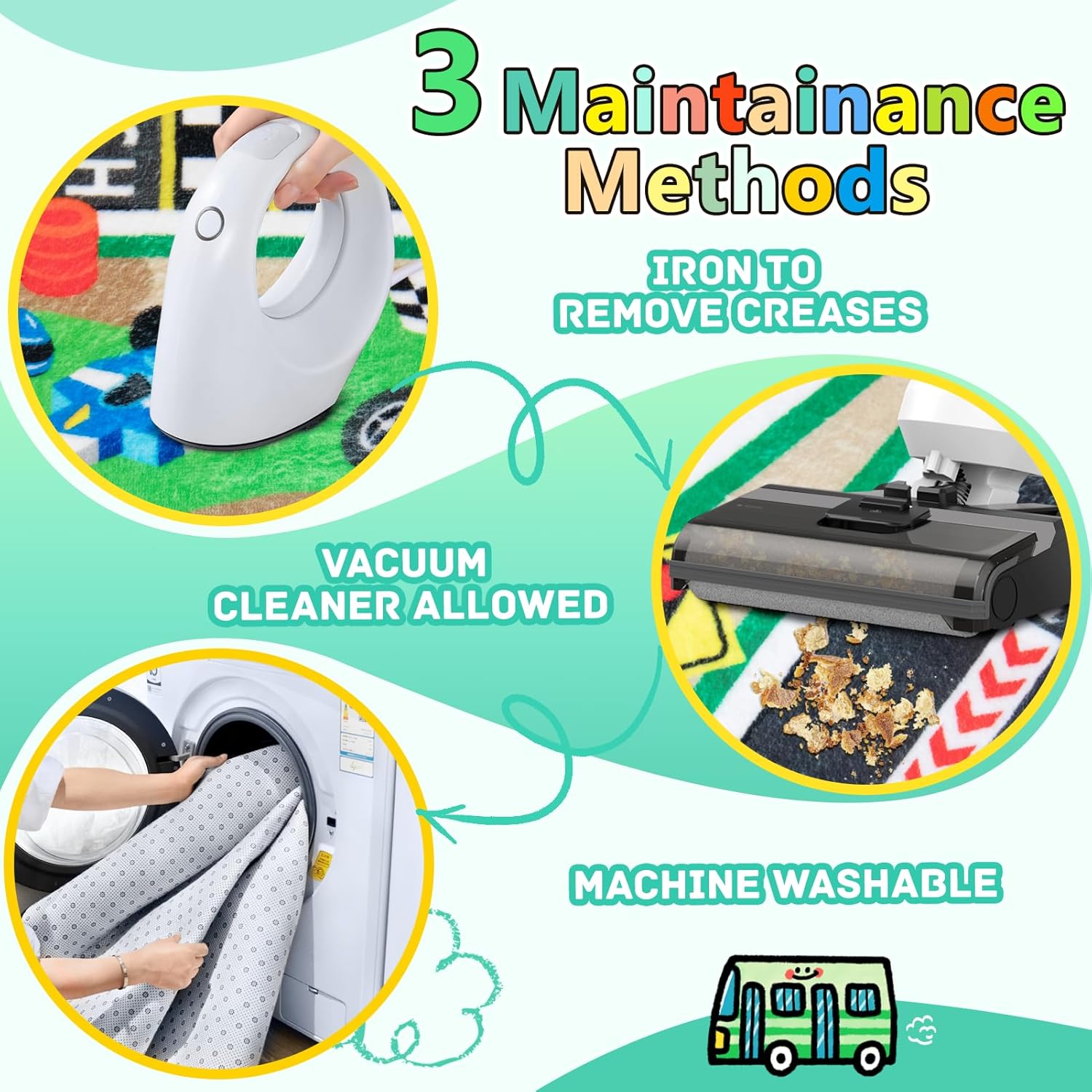- [About Creases & Thickness]: Due to vacuum package, the road map rugs for kids may feel thinner and have wrinkles after right unpacking. Please don't worry, it will take 3 to 7 days for the kids rug to regain its original shape. You could also use a steam iron to smooth out creases caused by shipping folds.