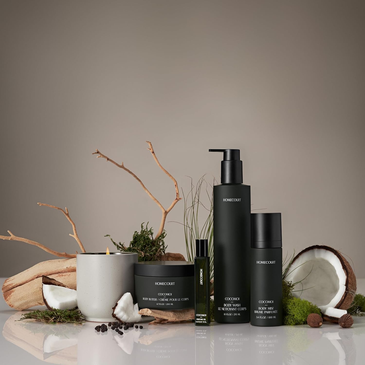 - EXOTIC, GROUNDING SCENT: The Homecourt Luxury Scented Candle in Cocomoi features an exotic blend of fresh coconut water, cedarwood, creamy fig, sweet cardamom, vetiver & black pepper. Inspired by the warm, grounded feeling of a sunset walk on the beach.