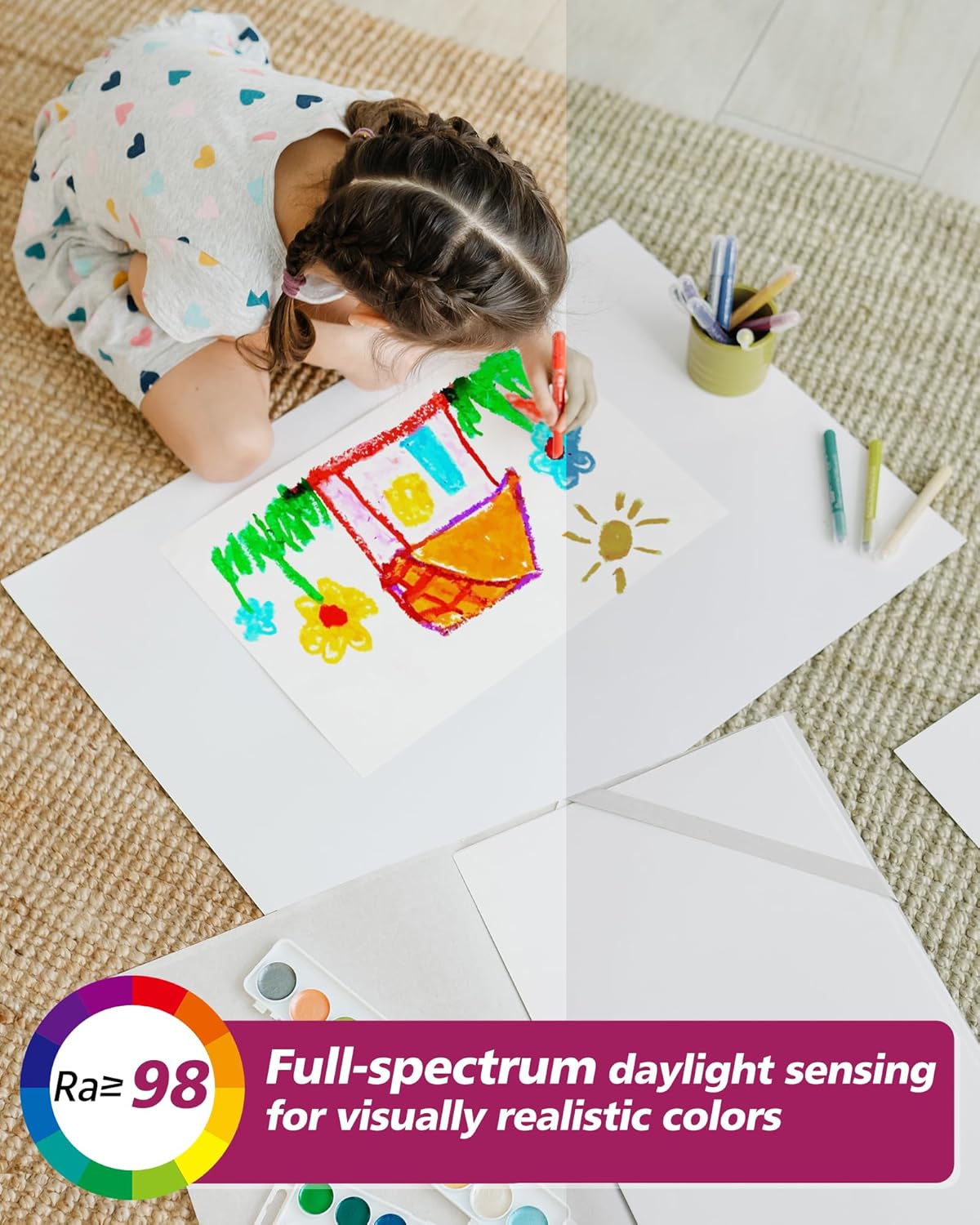 - Efficient Eye Protection: Ra>98 sunlight-like full-spectrum design, better and true color reproduction of objects; UGR<12, ultra-glare control, reduces direct and reflected light stimulation of the eyes