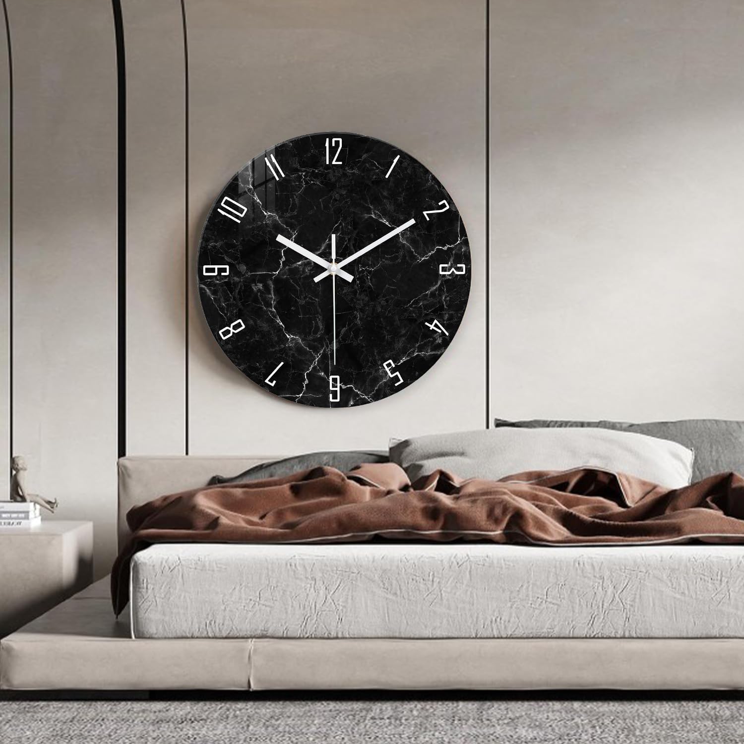 - 5.[Beautiful Decoration] - The minimalist wall clock keeps time accurately and stylishly, the black wall clock suitable for living rooms, bedrooms, kitchens, bathrooms, classrooms, guest rooms, offices, restaurants, cafes, libraries, or walls of any color.