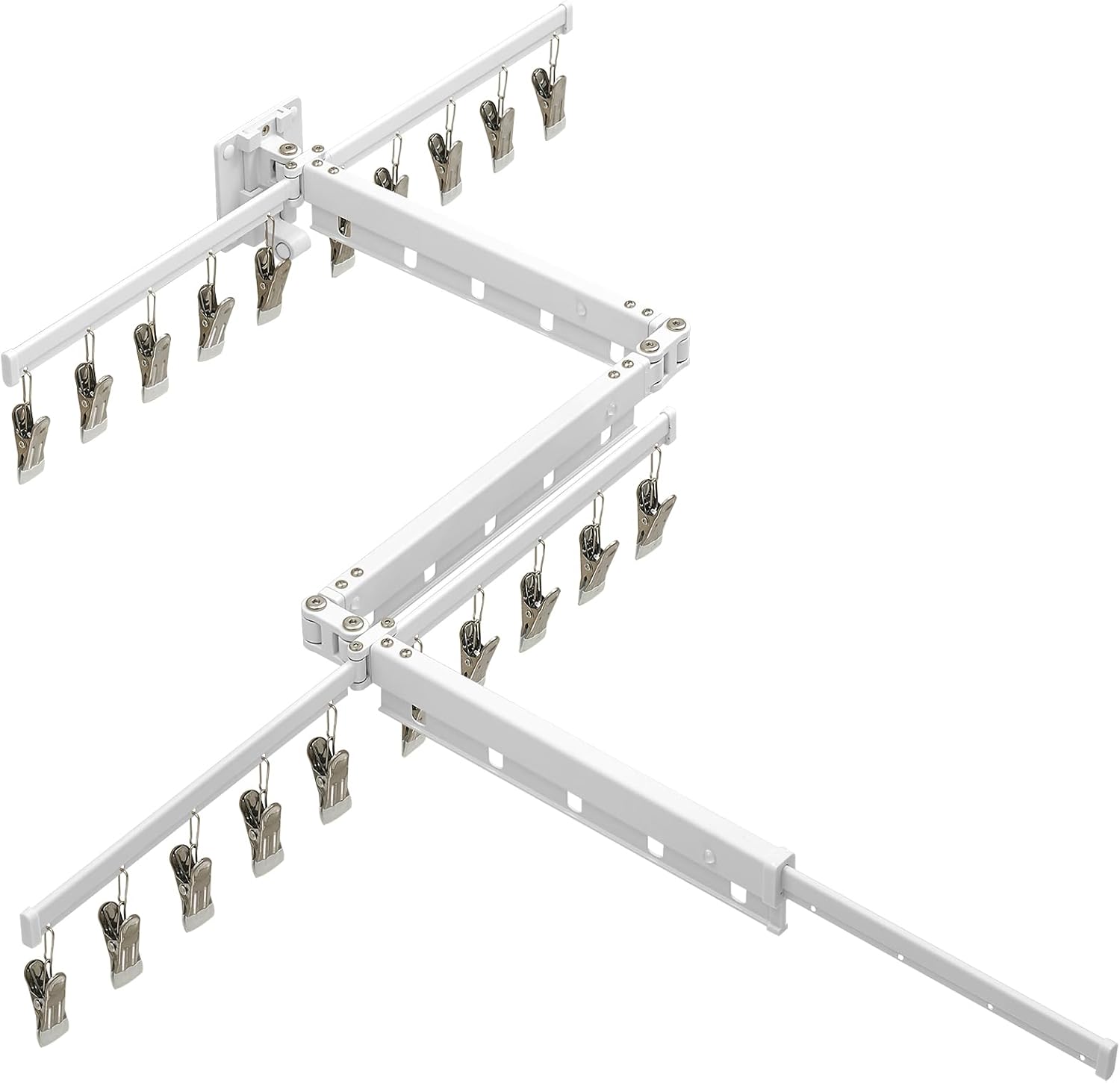 - Versatile Applications: Comes with 15 hanging holes for larger garments and 20 removable clips for smaller garments like socks, so you can hang tons of clothes at the same time. Its wall-mounted nature allows for installation anywhere.