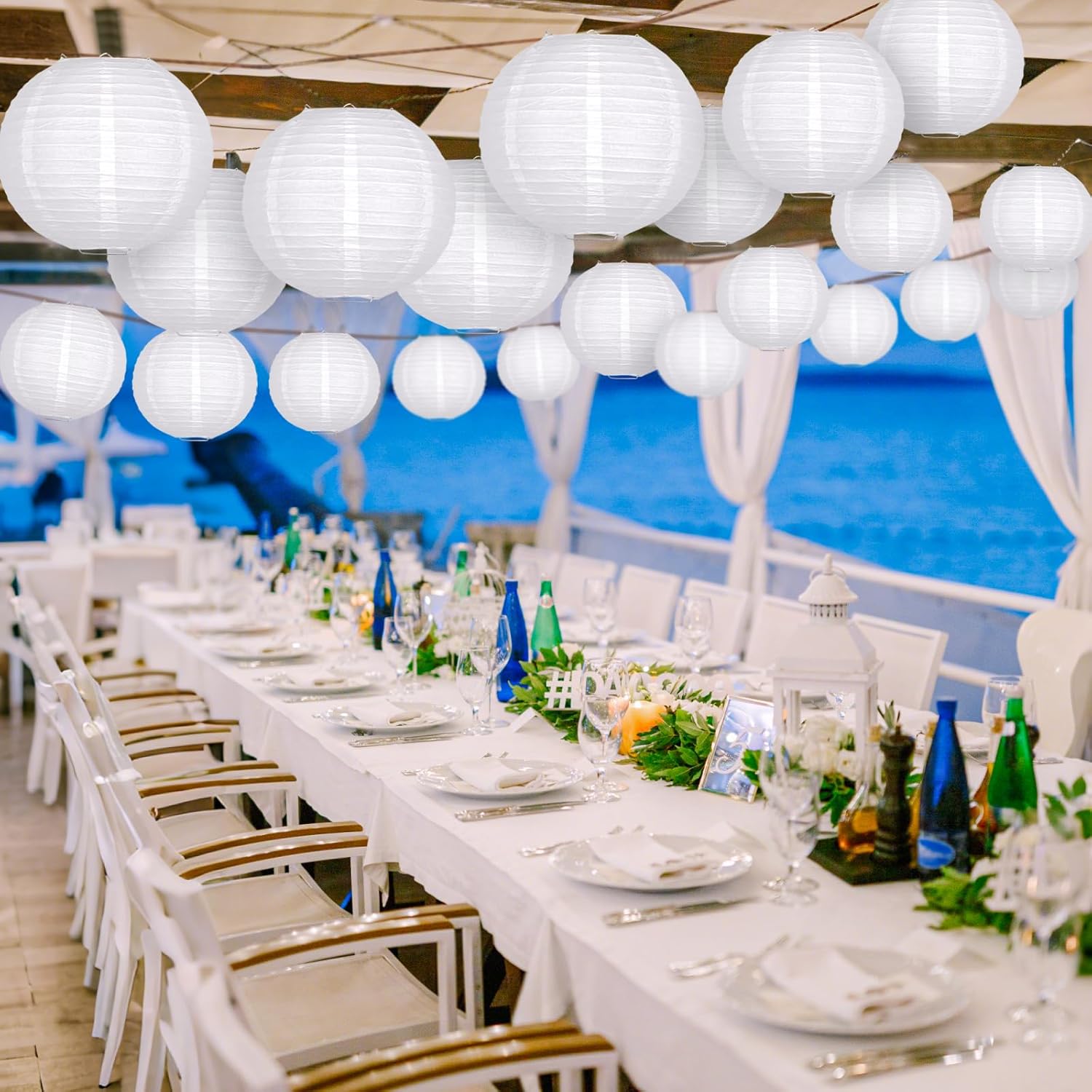 - PAPER LANTERNS SETS CONTENT - The white paper lantern set contains 21 paper lanterns that can be hung at your party. You will receive 6 pcs of 4 Inch Lanterns, 6 pcs of 6 Inch Lanterns, 6 pcs of 8 Inch Lanterns, 3 pcs of 10 Inch Lanterns. These white paper lanterns provide a variety of creative visual effects for your themed parties and weddings. A pack of 21 white lanterns are enough to decorate your event space and make it truly memorable