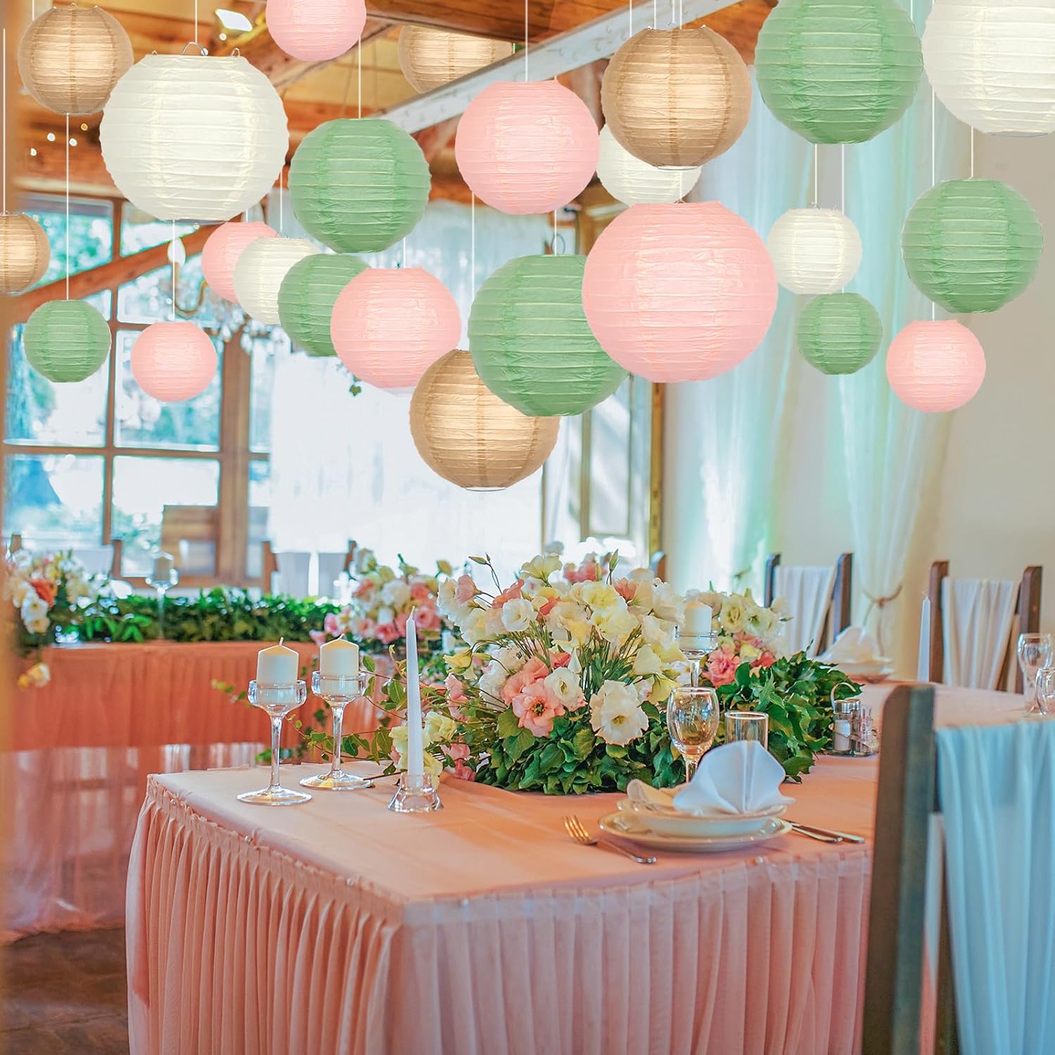 - SAGE GREEN BROWN PINK THEME PARTY DECOR - Paper lanterns are suitable for children's DIY activities, also suitable for events such as wedding party decoration, baby showers, birthday party, graduation, bridal shower, easter, engagement, Christmas, new years, outdoor BBQ, classroom, and office party , celebrations, market decoration summer garden party and other theme parties. For night use, you can put a light in the lantern. But LED lights NOT included