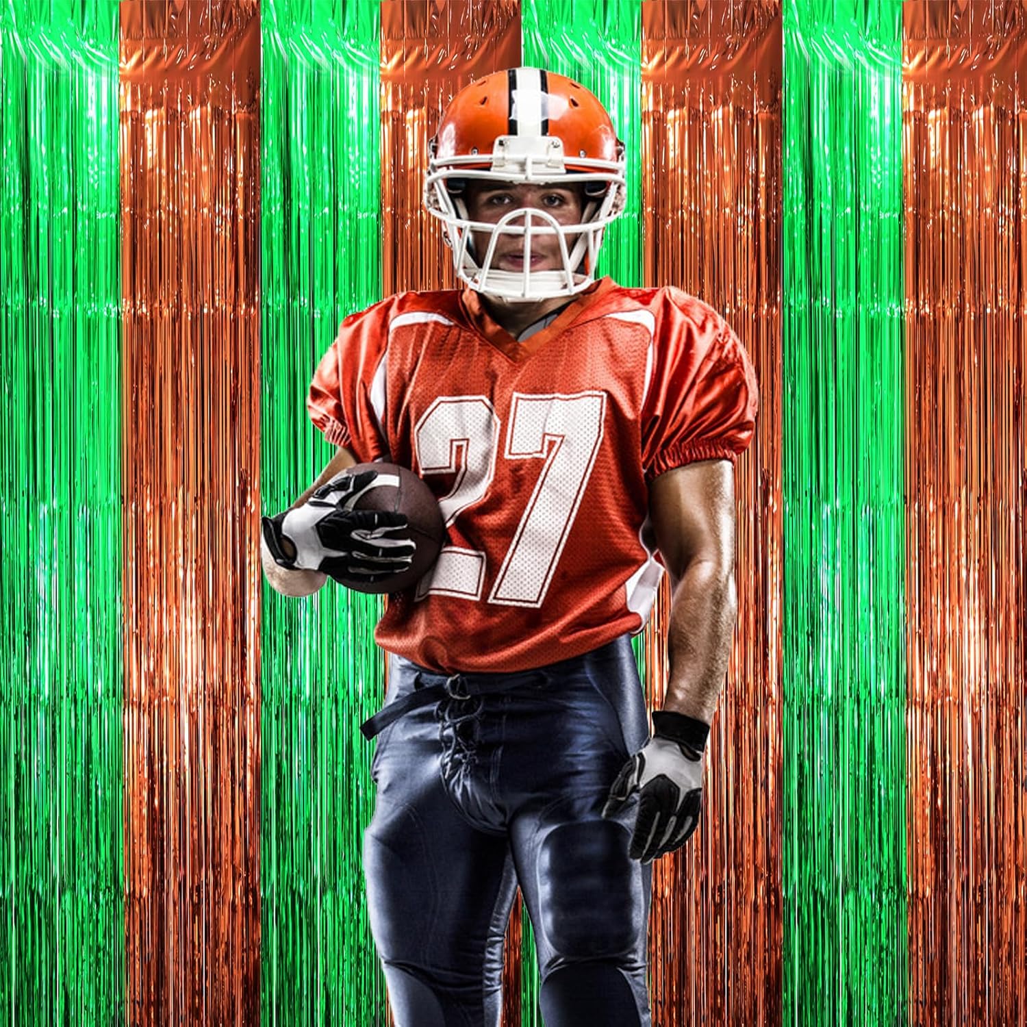 - Widely Applications: This brown green shimmer streamer foil curtain is perfect for Super Bowl theme party or birthday for men