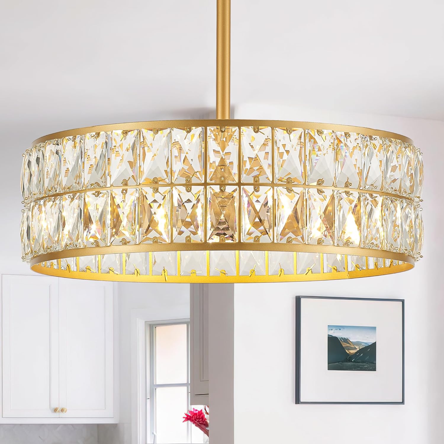 - 🏘️【WIDE APPLICATIONS】 this crystal pendant light fixture will adapt your various places, easily installation allows you hang this light in dining room kitchen island foyer entryway home office and so on, use different color temperature light bulbs(not included)will gives different ambience at your home