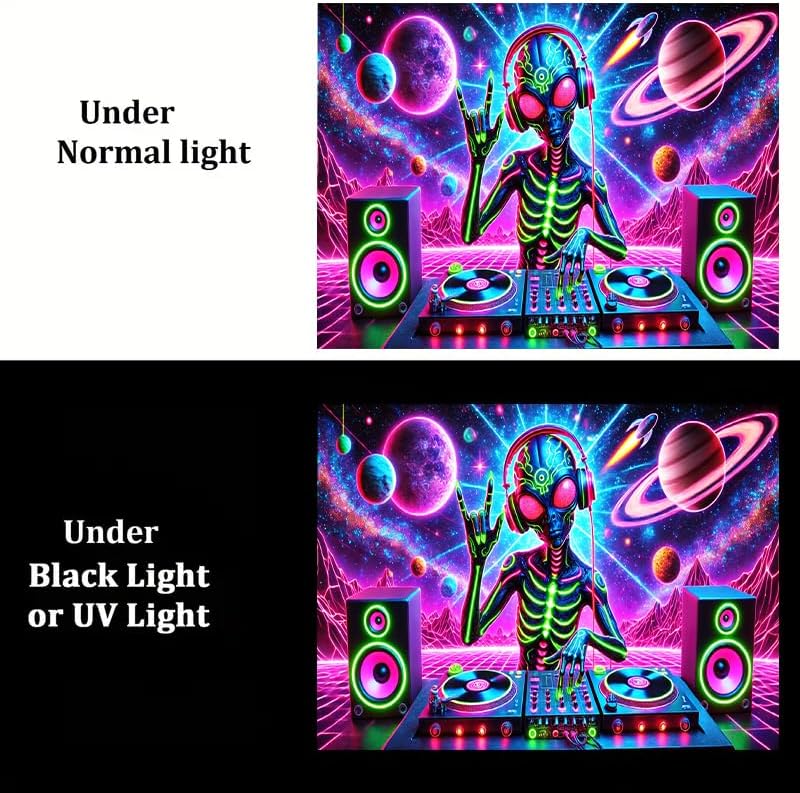 BlissYard Aliens Tapestry 78x59 Inch Blacklight DJ Aliens Tapestry Alien Tapestry for Men Guys Bedroom UV Reactive Alien Wall Tapestry Hanging Art Tapestry Room Decor Aesthetics Party Poster Banner