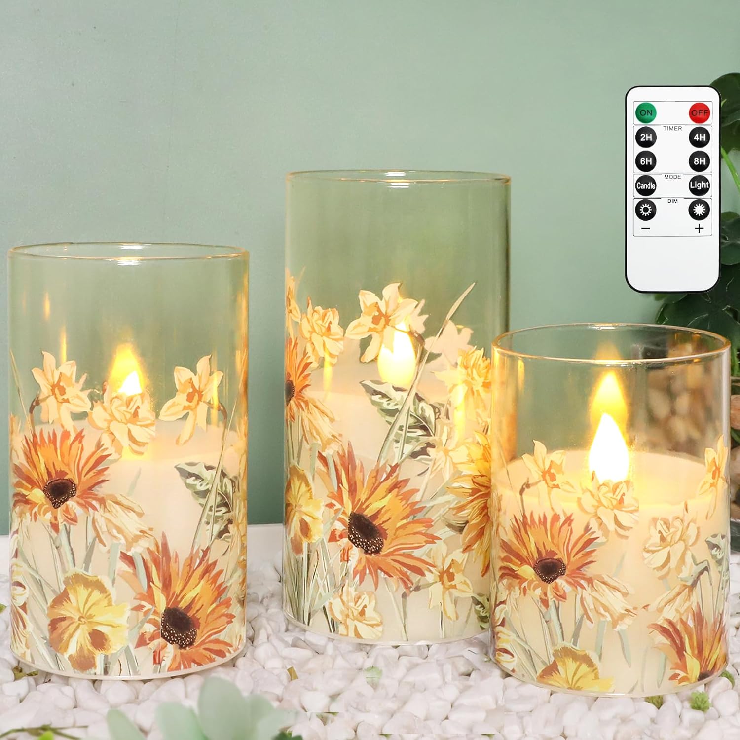 MELTONE Autumn Sunflower Flameless Candles Remote Real Wax Flickering Battery Operated Glass Candles - Home Party Bedroom Birthday Christmas Summer Fall Decorations