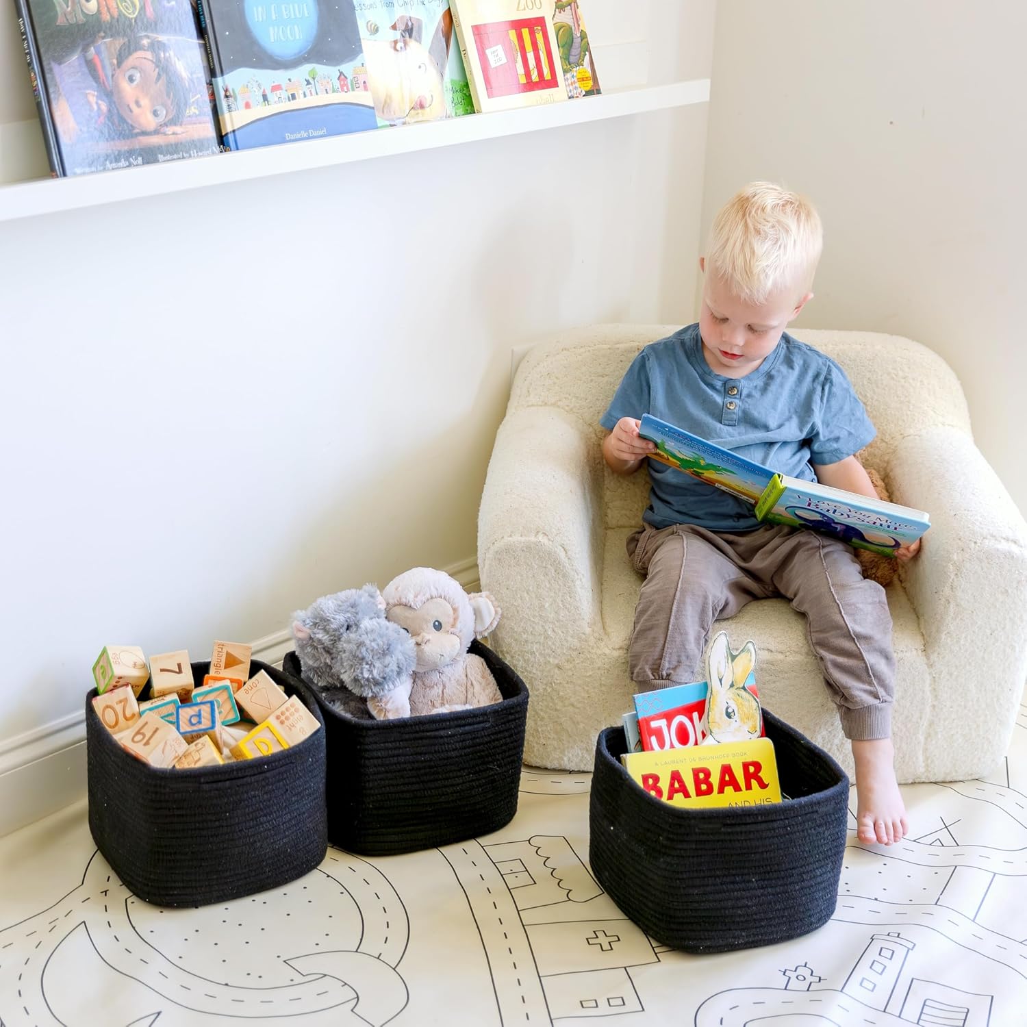 - Safe, Natural Cotton Organizer Bins: Crafted from the highest quality material in the market, our storage bins are oh-so-sturdy (and cute) and ready to take on little humans. They’re 100% safe, so you can rest easy if teething toddlers take a nibble.