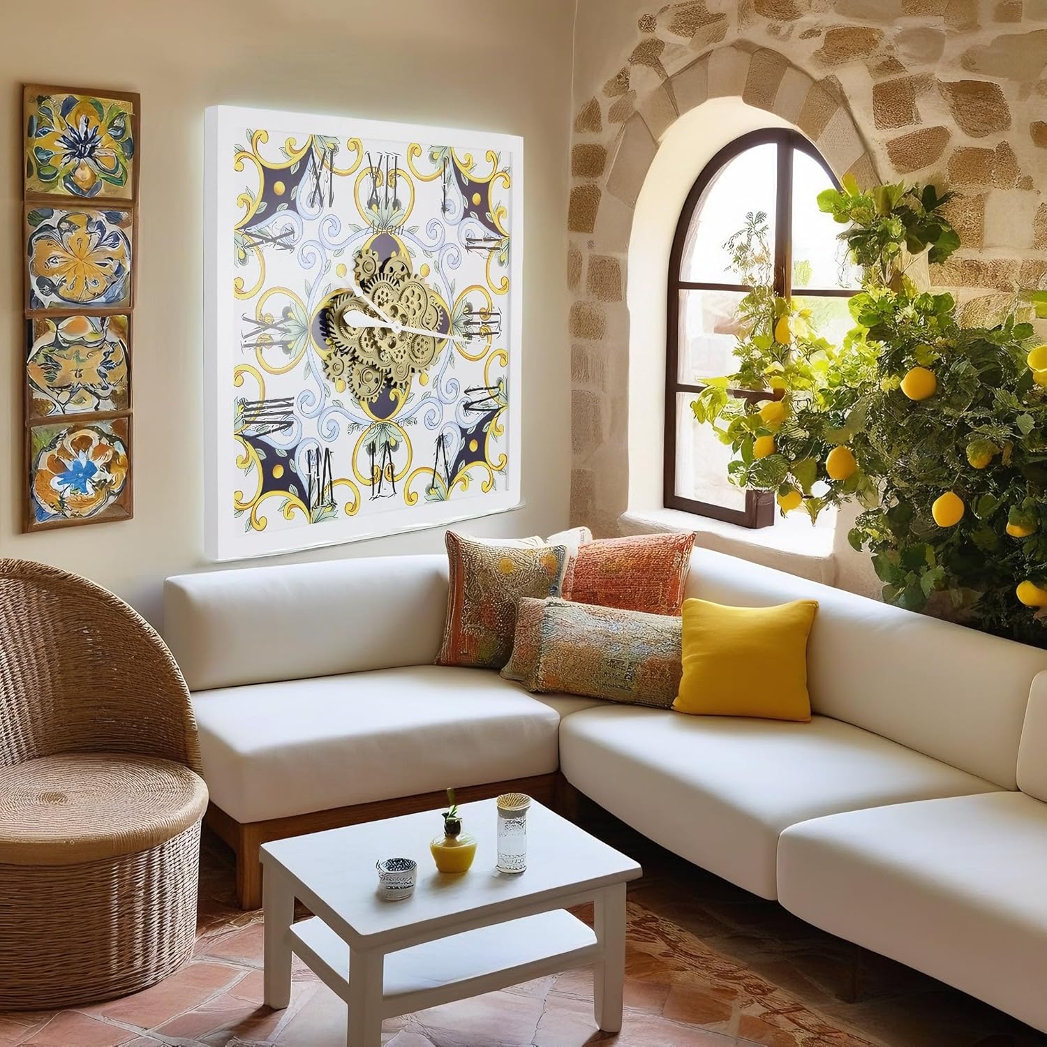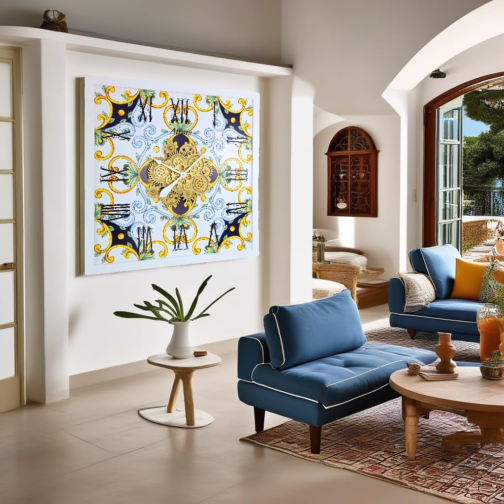 - Wall Clock Italy Collection with Real Moving Gears is an Art Timepiece inspired by the Famous Amalfi coast Tiles in Italy