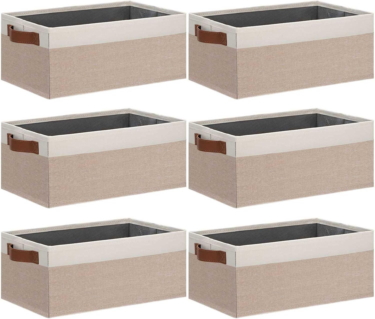 - 👍【SMALL STORAGE BINS】Set of 6 small storage bins, dimensions (each): 11.8(L) x 7.87(W) x 5.11(H) inch, which can store a variety of items to organize your home or office. With their perfect size and stylish appearance, these fabric storage baskets effortlessly blend with many furniture styles and color palettes, while keeping your home organized
