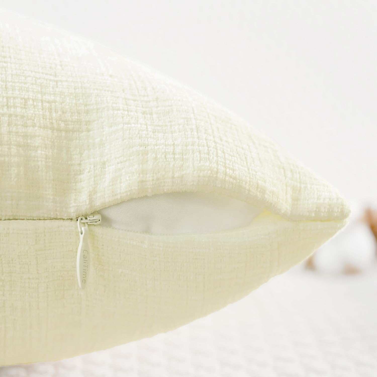 CaliTime Throw Pillow Covers Decorative 16 X 16 Inches Pack of 2 Cozy Chenille Cushion Cases for Couch Sofa Bed Living Room Home Beige
