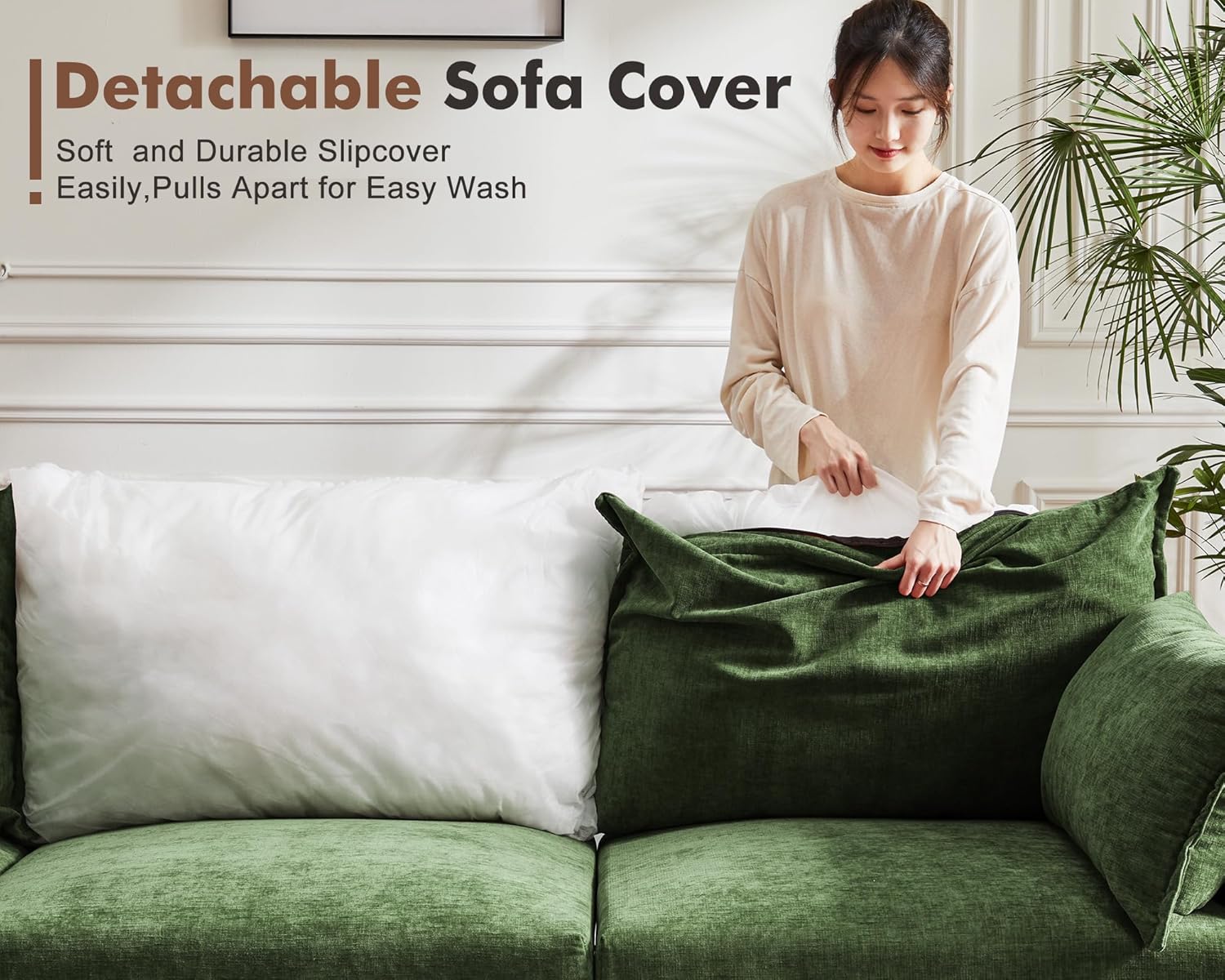 102.6" Modular Sectional Sofa, Oversized 3-Seater Green Couch with Removable Chenille Fabric Cover, Deep Seat & High Backrest for Living Room, Office & Apartment