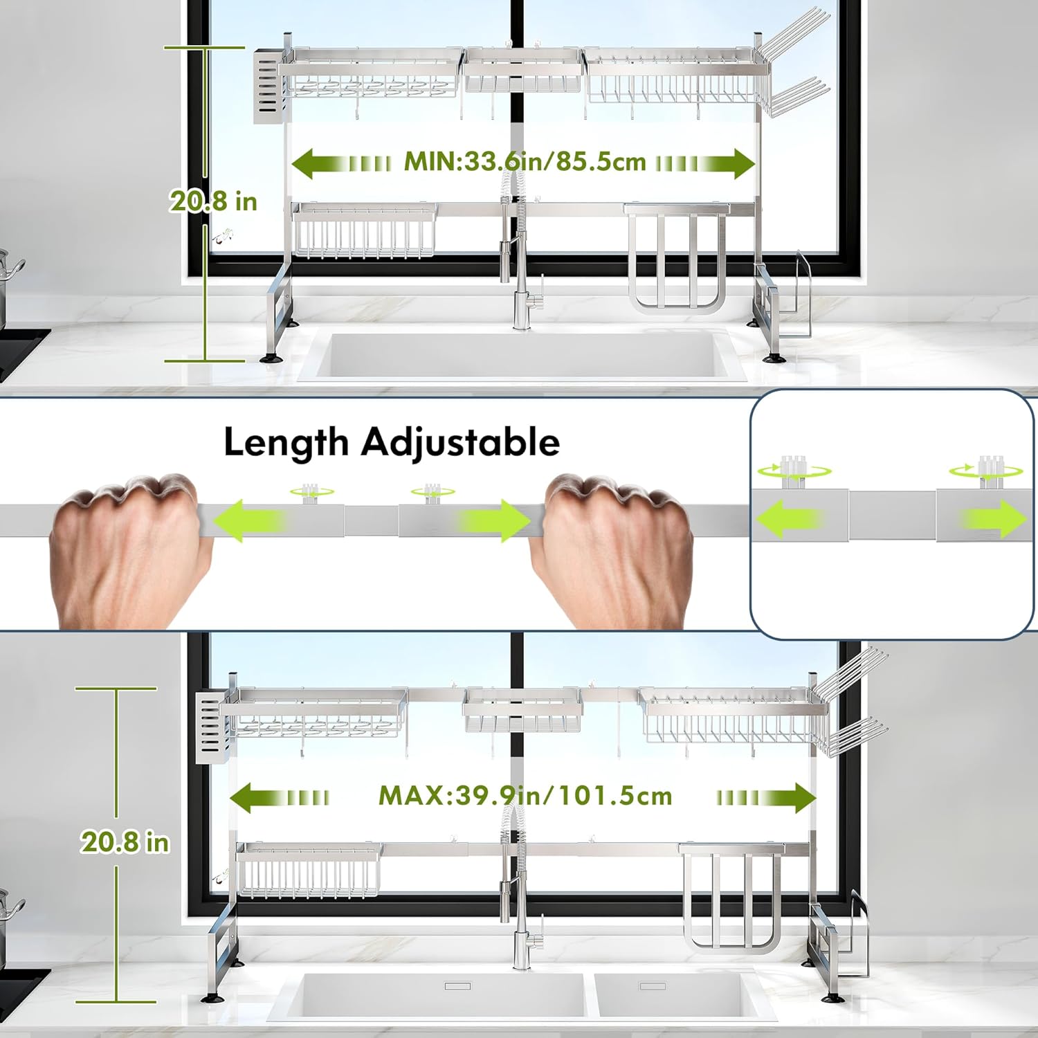 - Special Feature : Adjustable, Automatic Drainage, Expandable, Rust Resistant, Space Saving