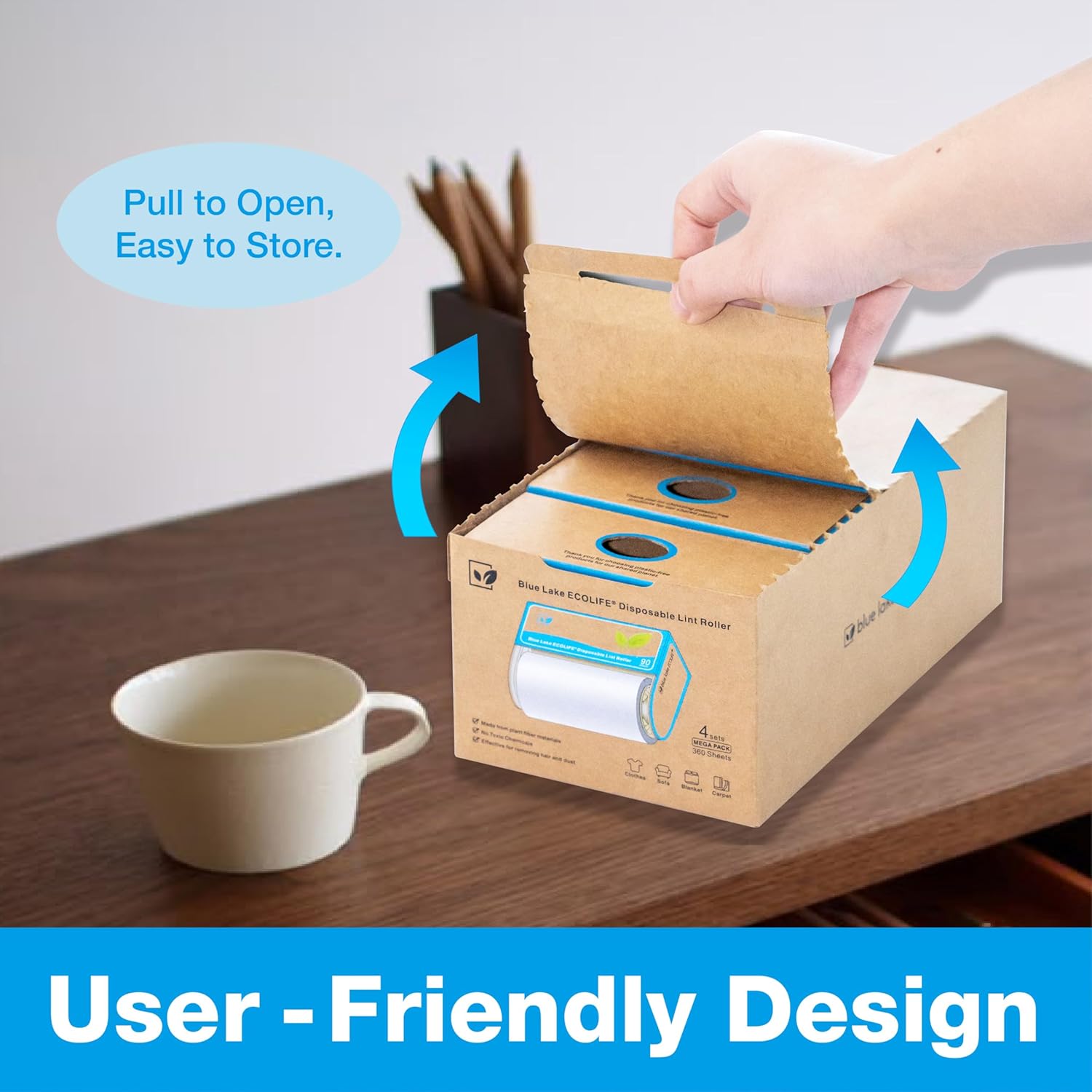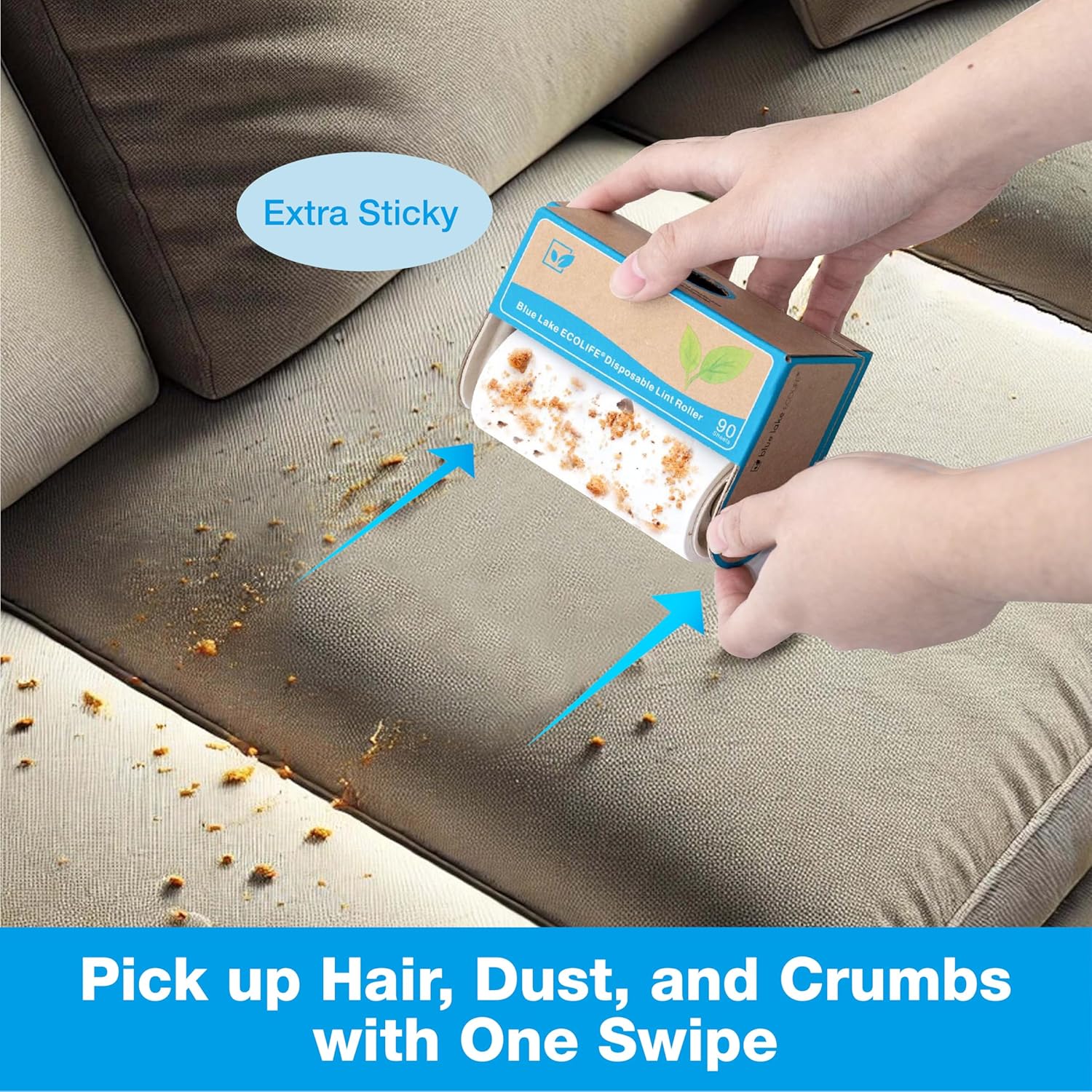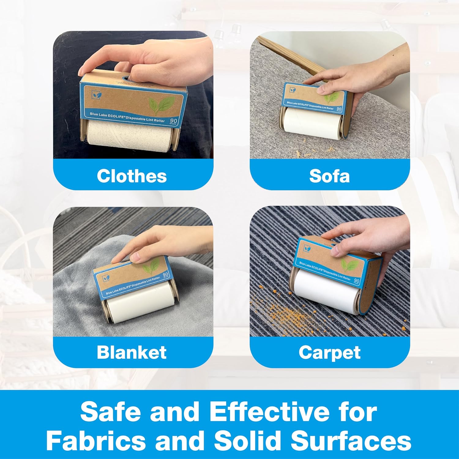 Blue Lake ECOLIFE Plastic-Free Lint Roller – 4-Pack (360 Sheets) | Extra Sticky & Eco-Lint Remover| Ideal for Clothes, Furniture & Carpet(4 Pack-360 Sheets)