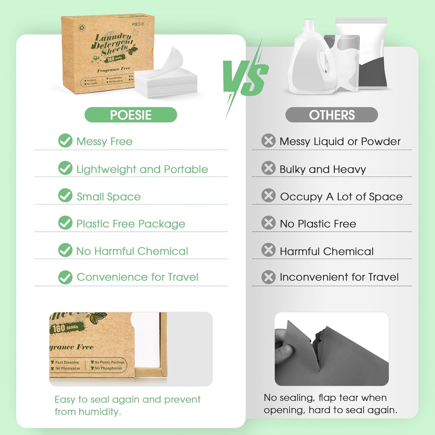- Take it with you anytime - Say goodbye to heavy plastic jugs and pods, easy to pick up recyclable packaging and no pollution lightweight laundry tablets for your home, dorm or travel life