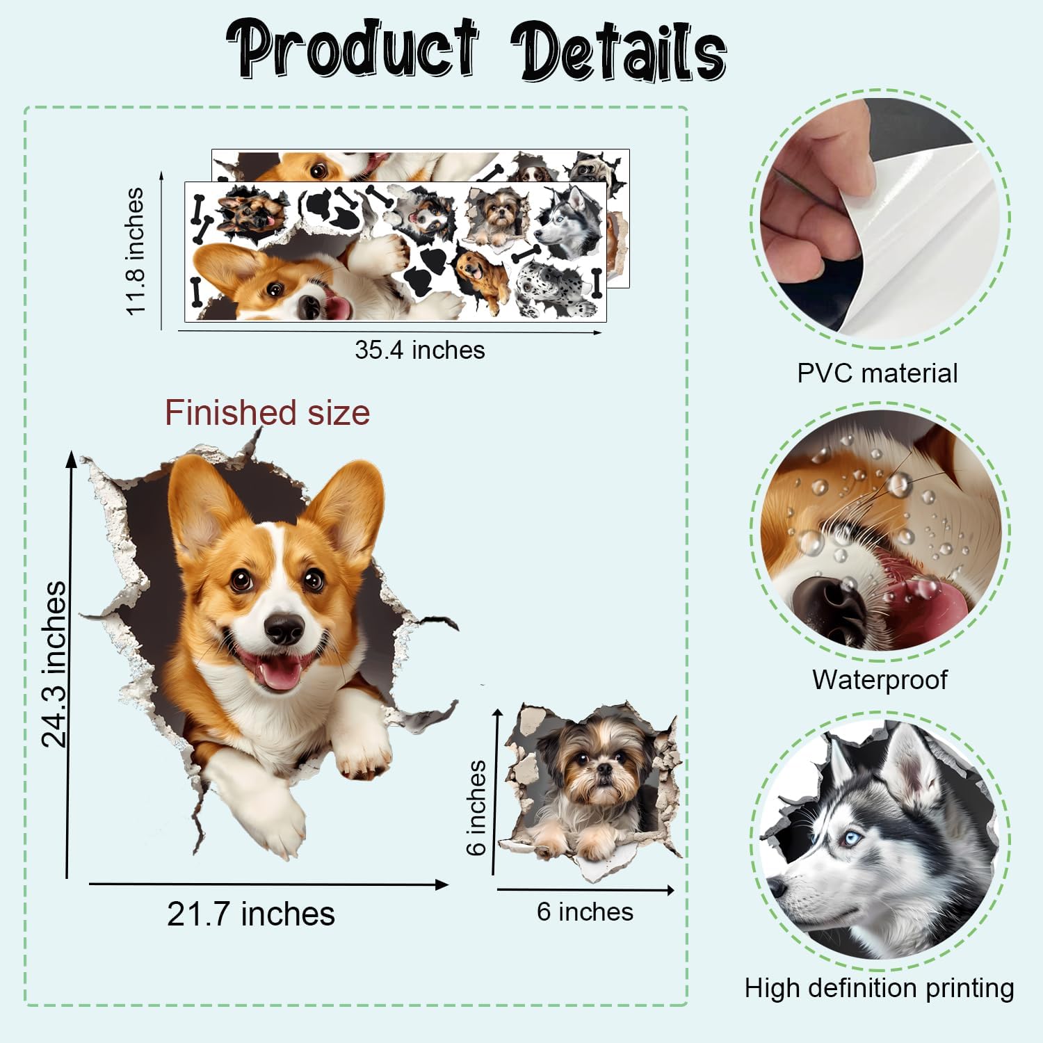 - DIY Wall Sticker: The package includes 3D Dogs wall stickers - (2 sheet, sheet size: 35.4x11.8inches, You need to assemble it into a complete large 3D dog sticker ), large dog size:21.7x24.3”, small dog size approximate:6” x 6”