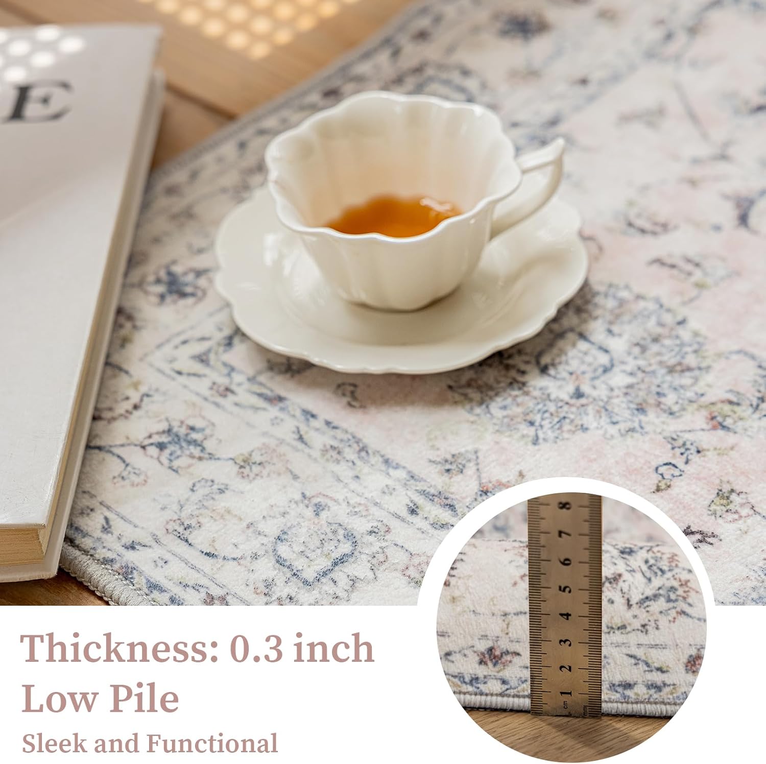 - Romantic Pink Style: This 2’x3’ area rug enchants with a soft vintage pink floral motif, effortlessly blending timeless elegance with a dreamy, romantic palette. The muted blush tones, gently kissed by subtle distressed details, lend an air of delicate femininity—ideal for shabby chic, French country, or modern farmhouse interiors