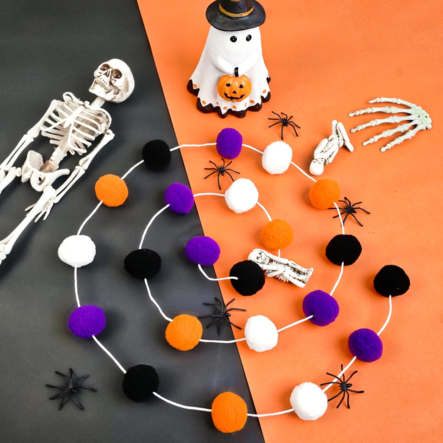 XmasExp Pom Pom Garland Decorations - Large Spring Felt Ball Garland for Mantle, Indoor Home Decor, Easter Tree Ornaments, Kids Room and Party Hanging Decor,13 Ft. (Halloween, 1.57")