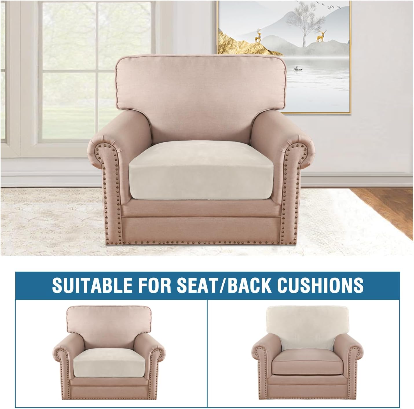 H.VERSAILTEX Velvet Stretch Couch Cushion Cover Plush Cushion Slipcover for Chair Cushion Furniture Protector Seat Cushion Sofa Cover (1 Piece Armchair Cushion Covers, Porcelain)