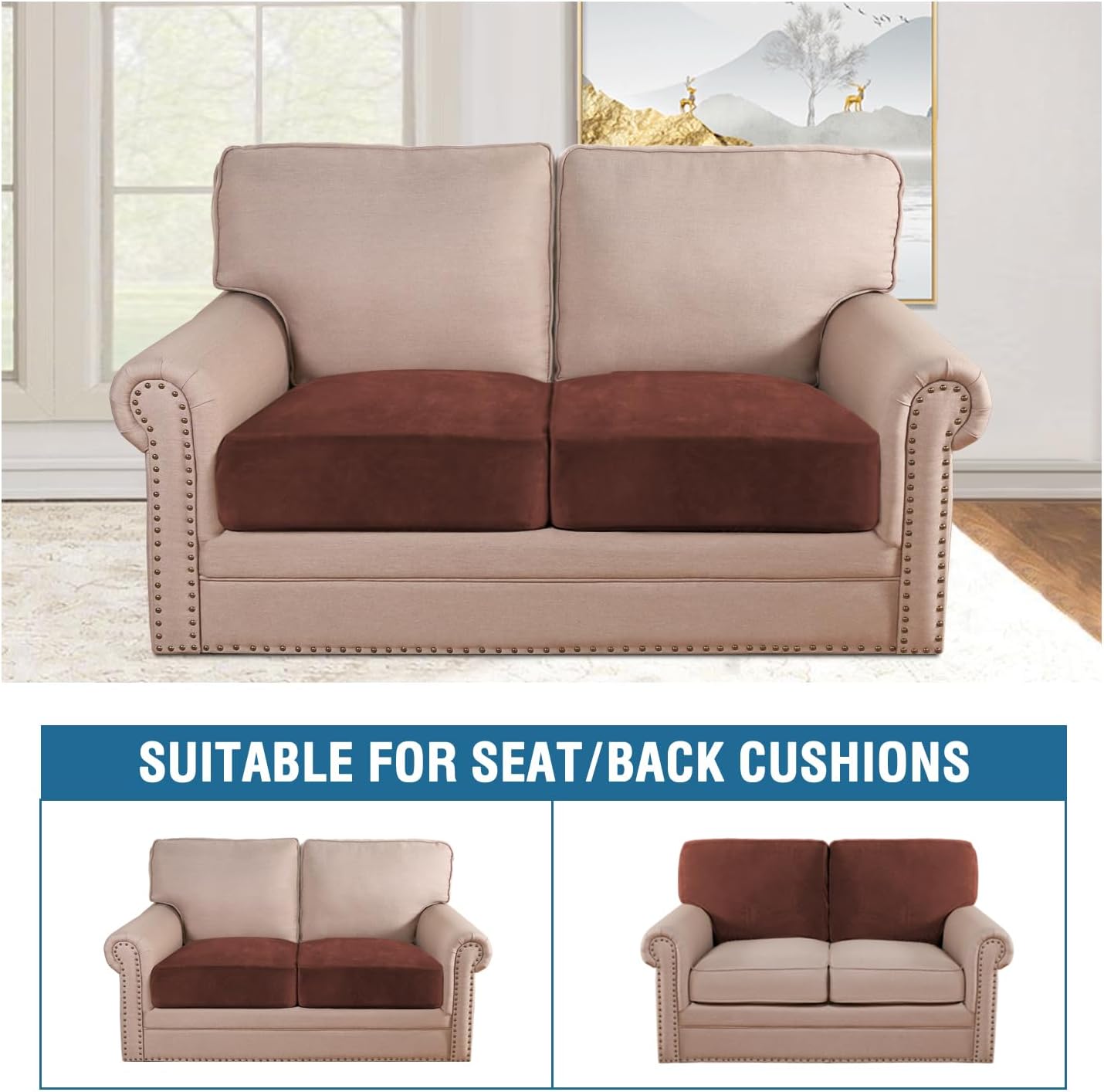 - STAY IN PLACE: Featuring non-skid thick elastic bottom, our cushion slipcover can stay tight with no snag, no wrinkling, shifting or slipping on both leather and cloth sofa. Check the installation guide carefully, it can be finished within 3 minutes by one person. It is very easy to put on and take down. (Installation Instructions Included)