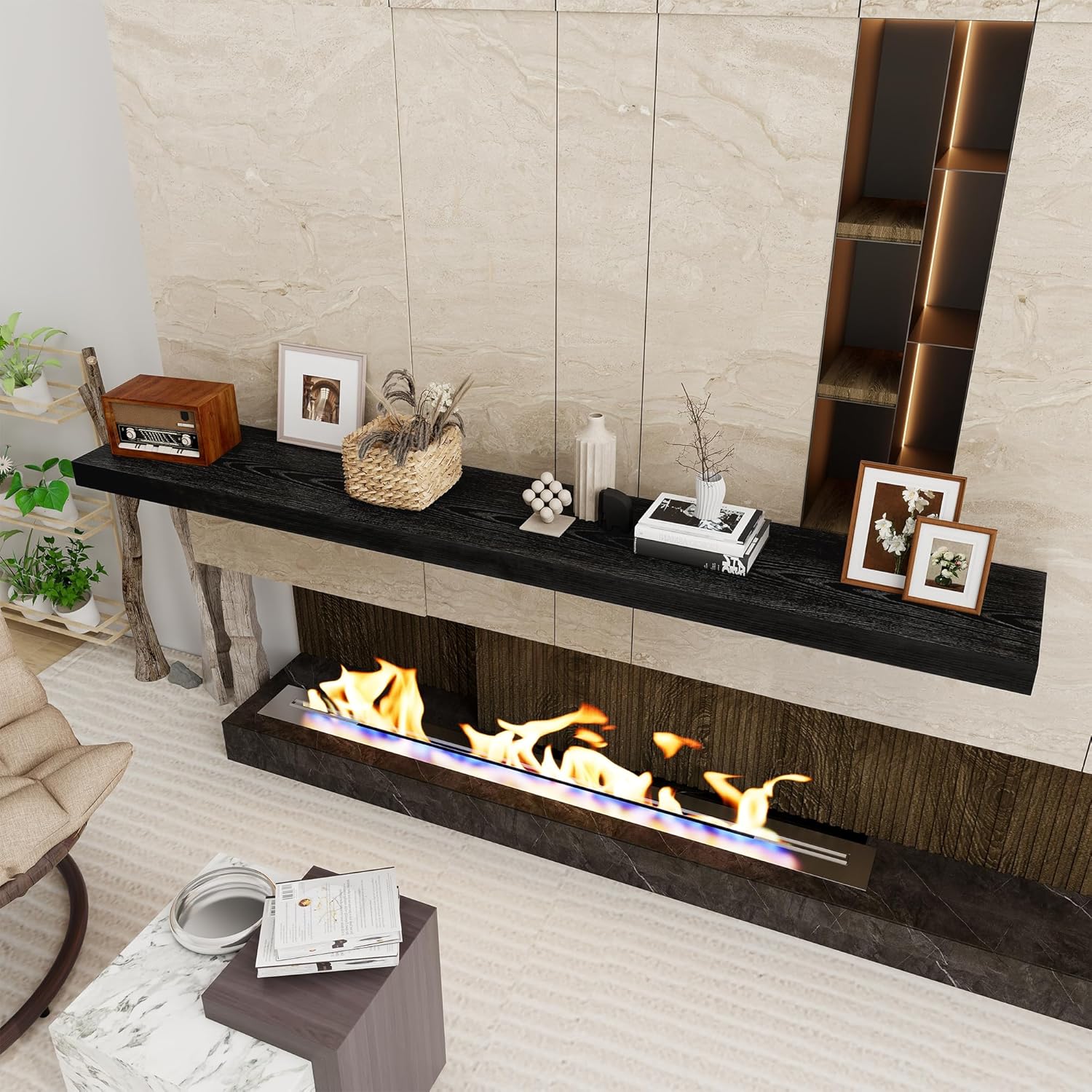Fun Memories 72 Inch Floating Shelf, 12 Inch Deep Wall Shelf for Fireplace Mantel, Deep Storage Shelves for Home & Office, Wall Shelves with Invisible Bracket, Black, Set of 1