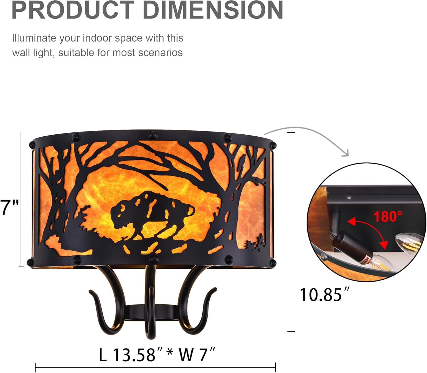 TOCHIC Farmhouse Wall Sconce, Rustic Vintage Indoor Wall Light Fixture, 2-Light Western Cow Wall Mount Light for Bedroom, Hallway, Living Room, Stairway